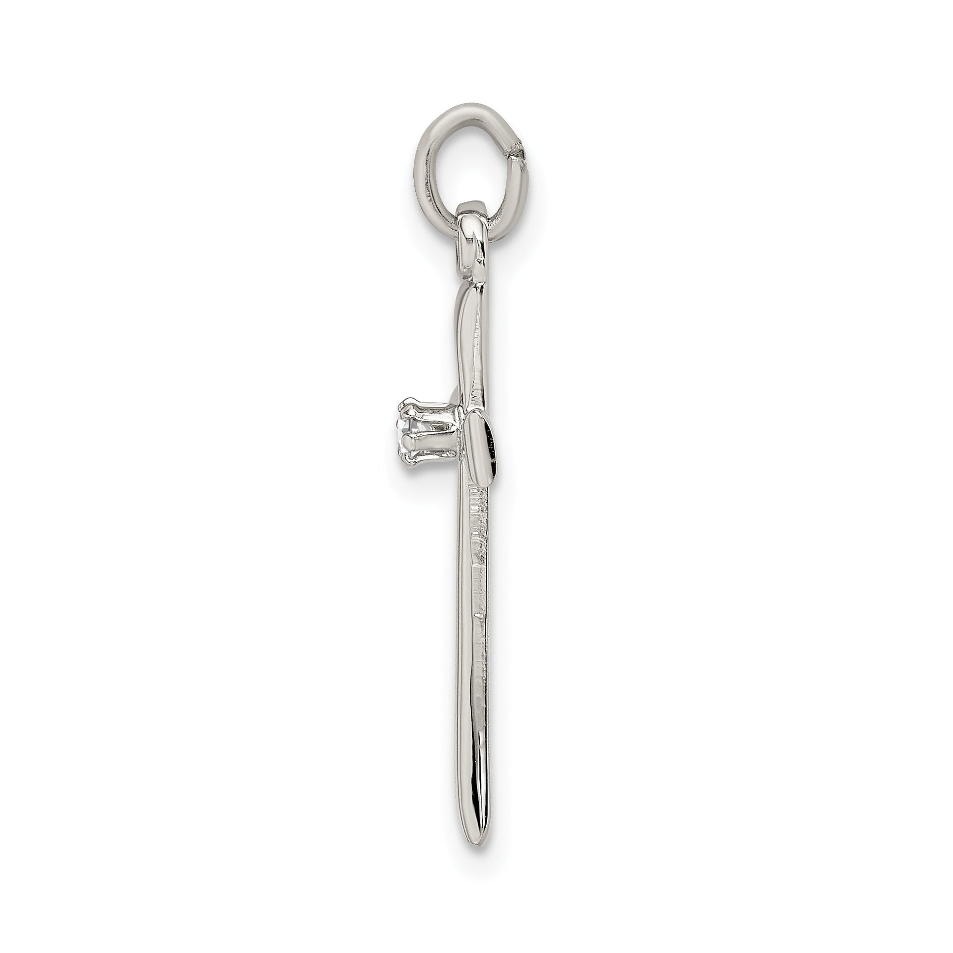 Introducing the Sterling Silver Polished CZ Cross Pendant, a timeless piece that blends elegance with modern design. This pendant features a single shimmering cubic zirconia set in sterling silver, polished to perfection, and plated with a platinum finish. The pendant measures 23 mm in length and 12 mm in width, adding a touch of grace to any outfit. Die-struck in design, it promises durability and an enduring shine. The flat back and silver-tone plating make it suitable for any occasion. Elevate your style with the Sterling Silver Polished CZ Cross Pendant today.