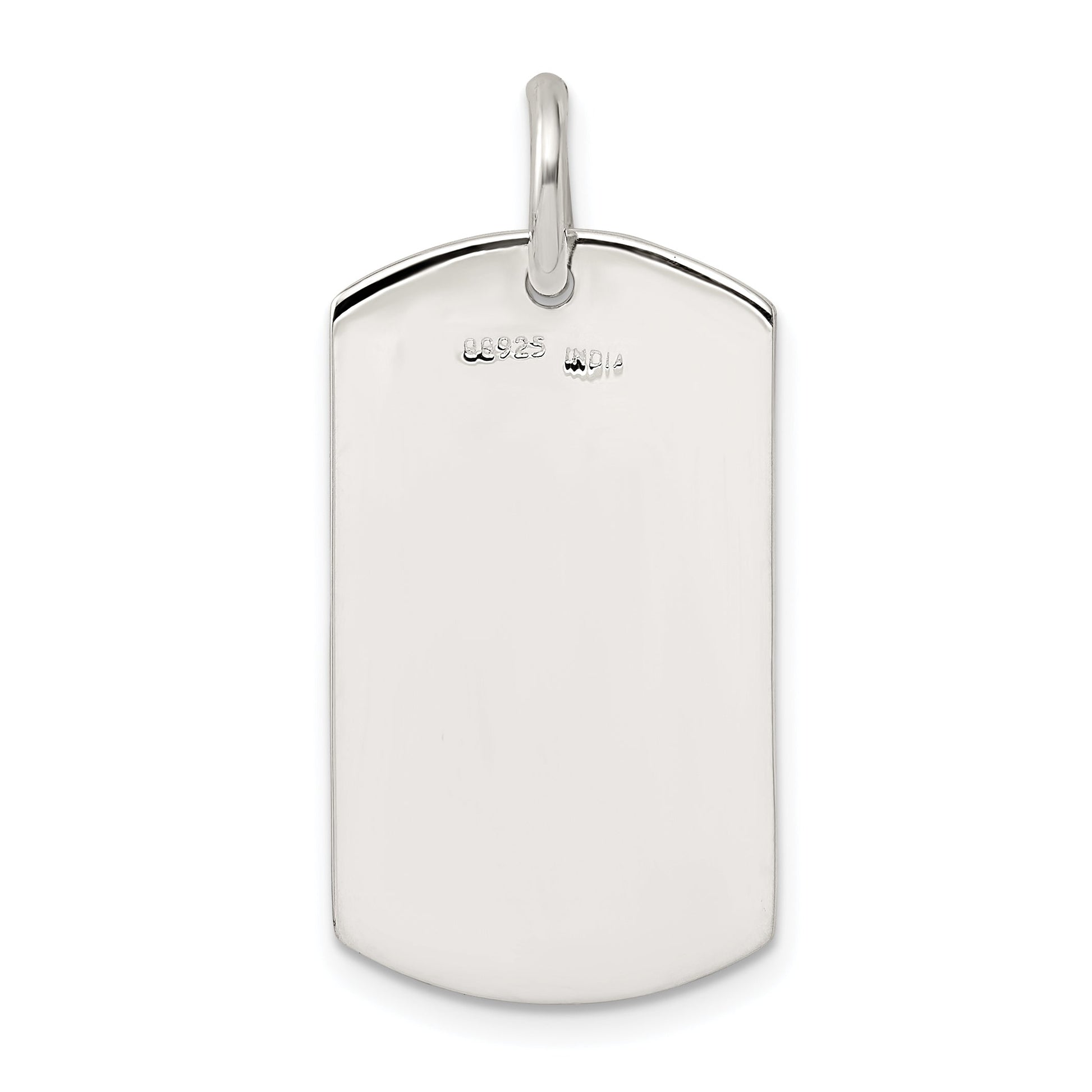 The Sterling Silver Polished Dog Tag Pendant offers a sleek and refined look. Crafted from 925 sterling silver, this pendant is polished to a brilliant shine. Its dog tag shape, measuring 33 mm in length, creates a bold style statement. Designed with a durable, anti-tarnish coating, it preserves its shine over time. The solid construction ensures long-lasting quality. Weighing just enough to feel substantial, this pendant suits any style. The sterling silver bail fits most chains. Choose the Sterling Silver Polished Dog Tag Pendant for a piece that combines classic style with modern elegance.