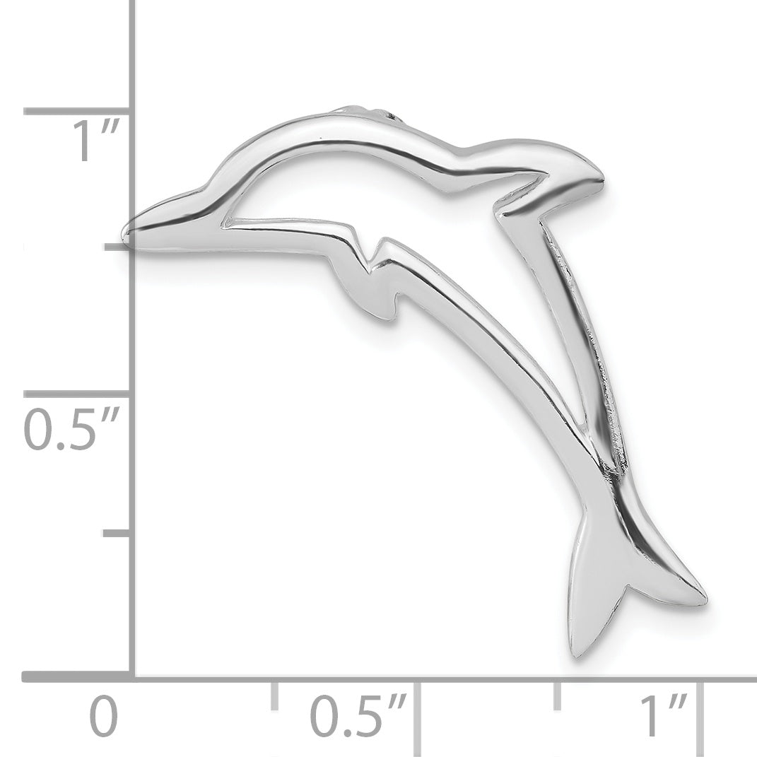 The Sterling Silver Polished Dolphin Chain Slide captures the sleek elegance of a leaping dolphin. Crafted from 925 sterling silver, this charm promises lasting shine and strength. Its polished finish highlights the streamlined design, making it a captivating addition to any collection. Measuring 26.25 mm in length and 30.8 mm in width, it suits a variety of chains and showcases your love for the ocean. This themed piece appeals to women seeking both versatility and charm. The Sterling Silver Polished Dolphin Chain Slide adds a touch of marine wonder to your jewelry wardrobe.