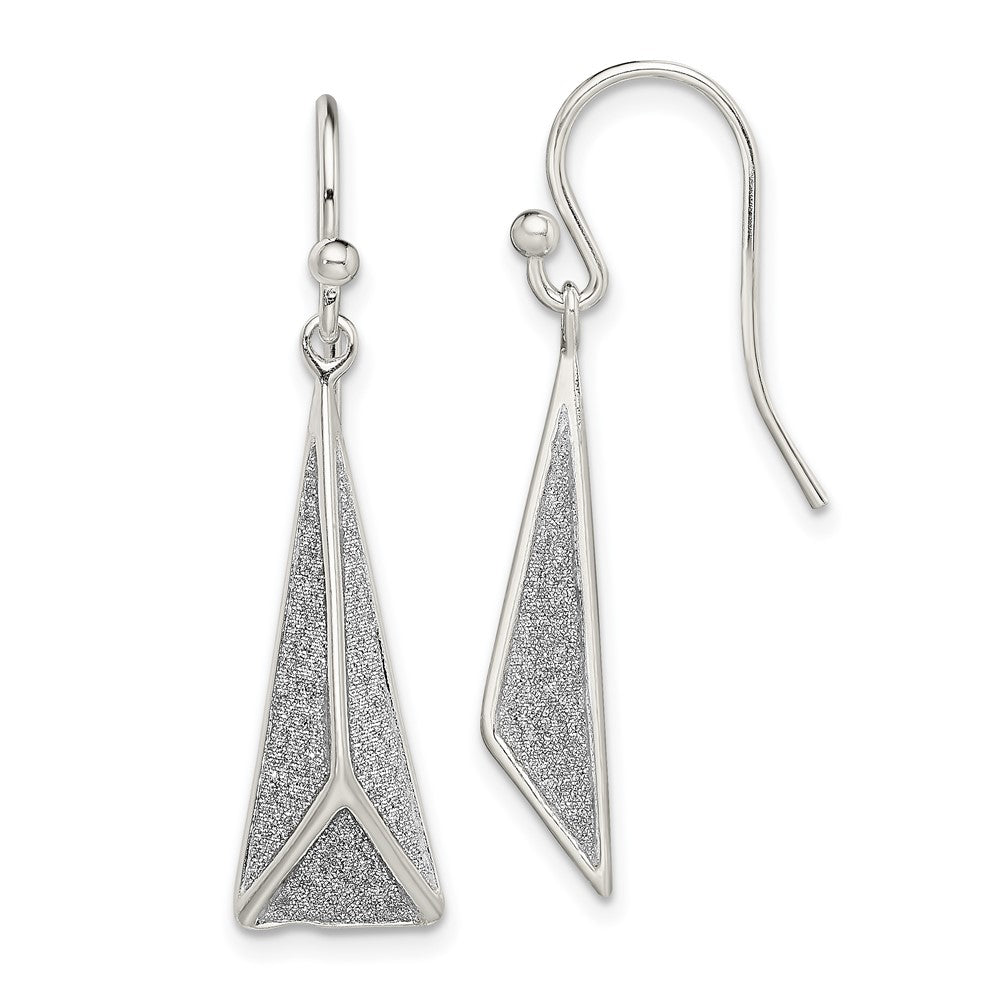Introducing the Sterling Silver Polished Enamel Glitter Fabric Triangle Dangle Earrings. Crafted from 925 sterling silver, these earrings shine with a polished finish. At 34.7 mm in length and 8.2 mm in width, they create a striking silhouette. The enchanting design is enhanced by enamel accents and a glitter-infused fabric inlay. An anti-tarnish coating promises long-lasting beauty. These dangle earrings, secured with a French wire closure, offer a sleek look perfect for any occasion. Add sophistication to your style with the Sterling Silver Polished Enamel Glitter Fabric Triangle Dangle Earrings.