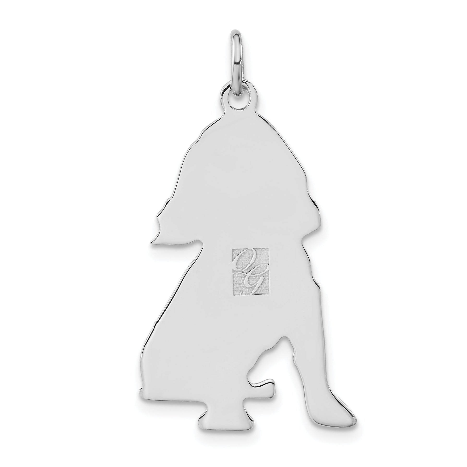 The Sterling Silver Polished Engravable Small Cocker Spaniel Disc Charm adds a personal touch to any jewelry collection. Crafted from pure 925 sterling silver, this charm boasts a polished finish that catches the light beautifully. Measuring 36.5mm in length and 20.15mm in width, its sleek design makes it perfect for everyday wear. The front of the charm is engravable, allowing for a custom message or initials. This unisex piece features a Cocker Spaniel theme, making it a thoughtful gift for dog lovers. Elevate your charm collection with this unique Sterling Silver Polished Engravable Small Cocker Spaniel Disc Charm.