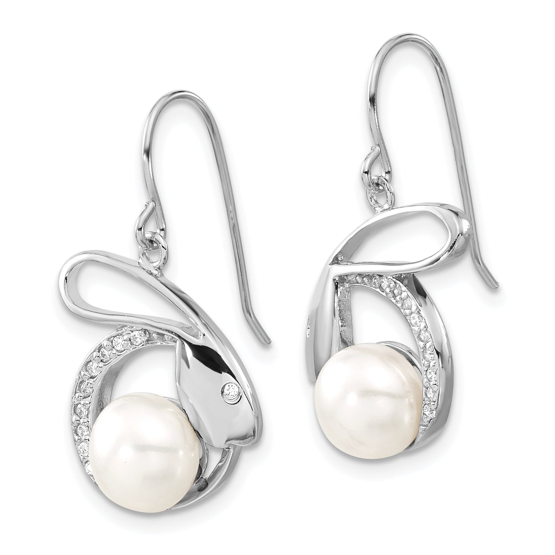 The Sterling Silver Polished Freshwater Cultured Pearl & CZ Rabbit Dangle Earrings embody elegance and charm. Crafted from high-quality 925 sterling silver, these earrings showcase sparkling cubic zirconias and lustrous freshwater pearls, each measuring 7 to 8mm. The polished finish enhances their allure, making them ideal for special occasions or everyday elegance. Designed for women, these earrings feature a secure French wire closure and a playful rabbit motif that adds a touch of whimsy. Measuring 29.2mm in length and 16.2mm in width, the Sterling Silver Polished Freshwater Cultured Pearl & CZ Rabbit Dangle Earrings are a must-have for jewelry lovers.