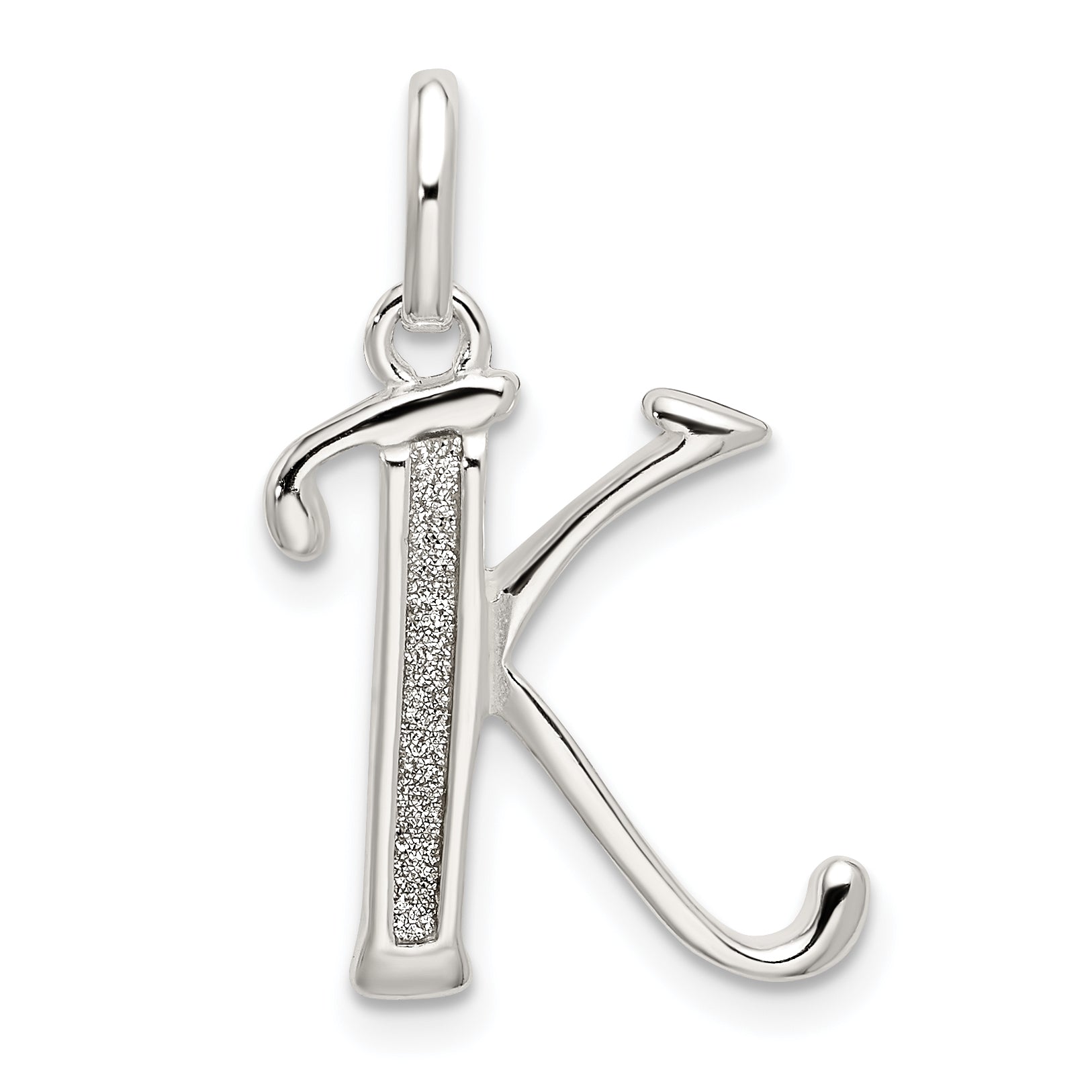 Elevate your charm collection with the Sterling Silver Polished Glitter Enamel Letter K Initial Charm. Expertly crafted, this dazzling piece features genuine 925 sterling silver with a polished finish. The charm dazzles with glitter-infused enamel, giving it an eye-catching appeal. With a solid build and anti-tarnish coating, it ensures lasting sparkle. The charm measures 25 mm in length and has a flat back profile for comfortable wear. The Sterling Silver Polished Glitter Enamel Letter K Initial Charm adds a touch of elegance and personalization to any jewelry ensemble.