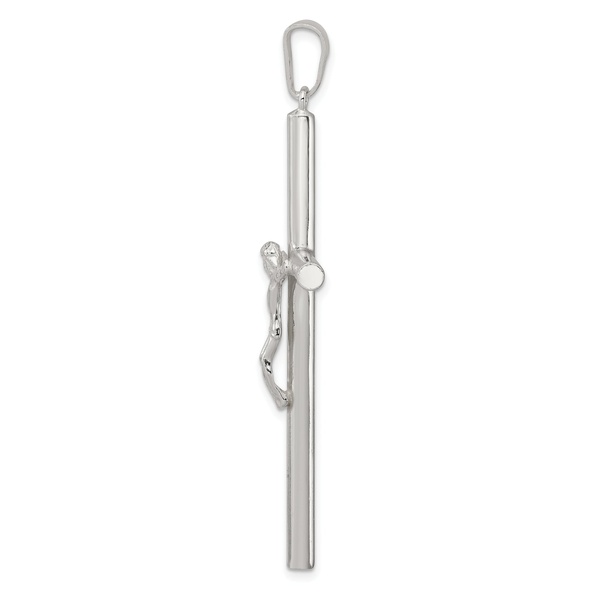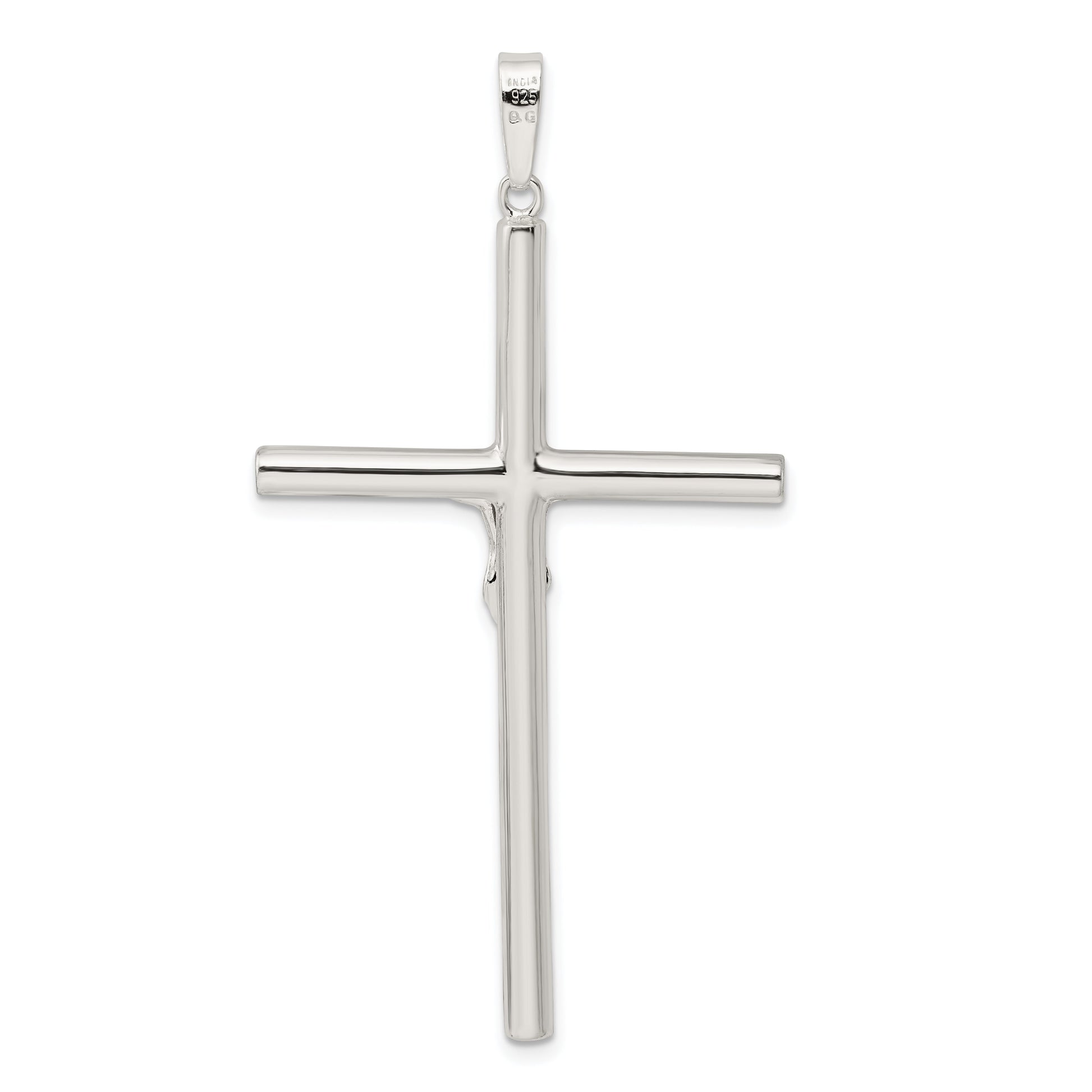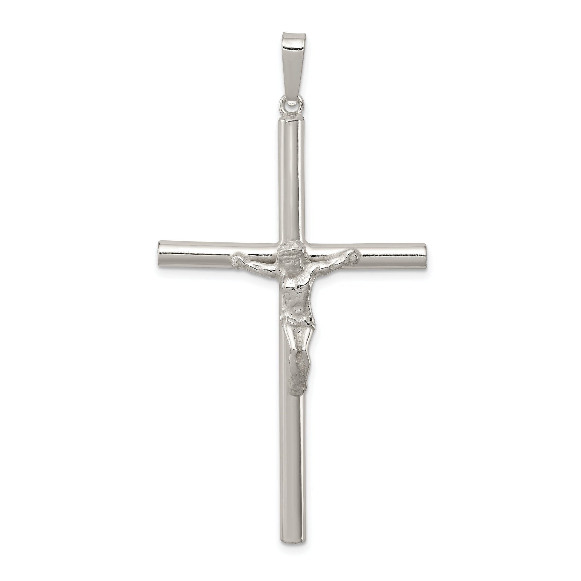 The Sterling Silver Polished Hollow Crucifix Pendant is a true emblem of elegance and grace. Crafted from 925 sterling silver, its polished finish gleams brilliantly. This pendant measures 59.60 mm in length and 31.75 mm in width, with a thickness of 6.25 mm, making it a standout piece. Its hollow design ensures a lightweight feel without sacrificing strength. An anti-tarnish coating keeps the white sheen fresh. Produced through precision stamping, it boasts a themed, closed-back style. The Sterling Silver Polished Hollow Crucifix Pendant is a timeless accessory for any collection.