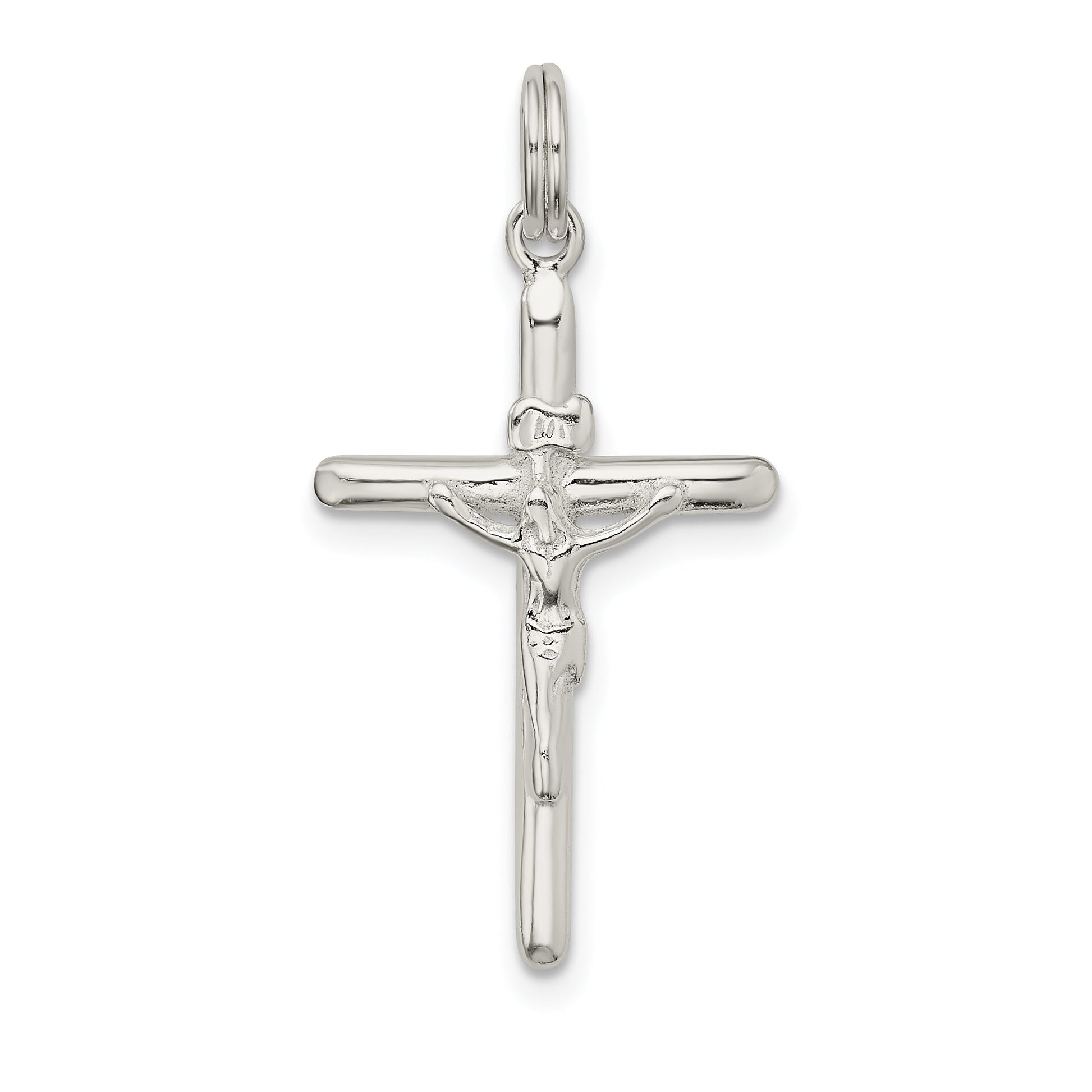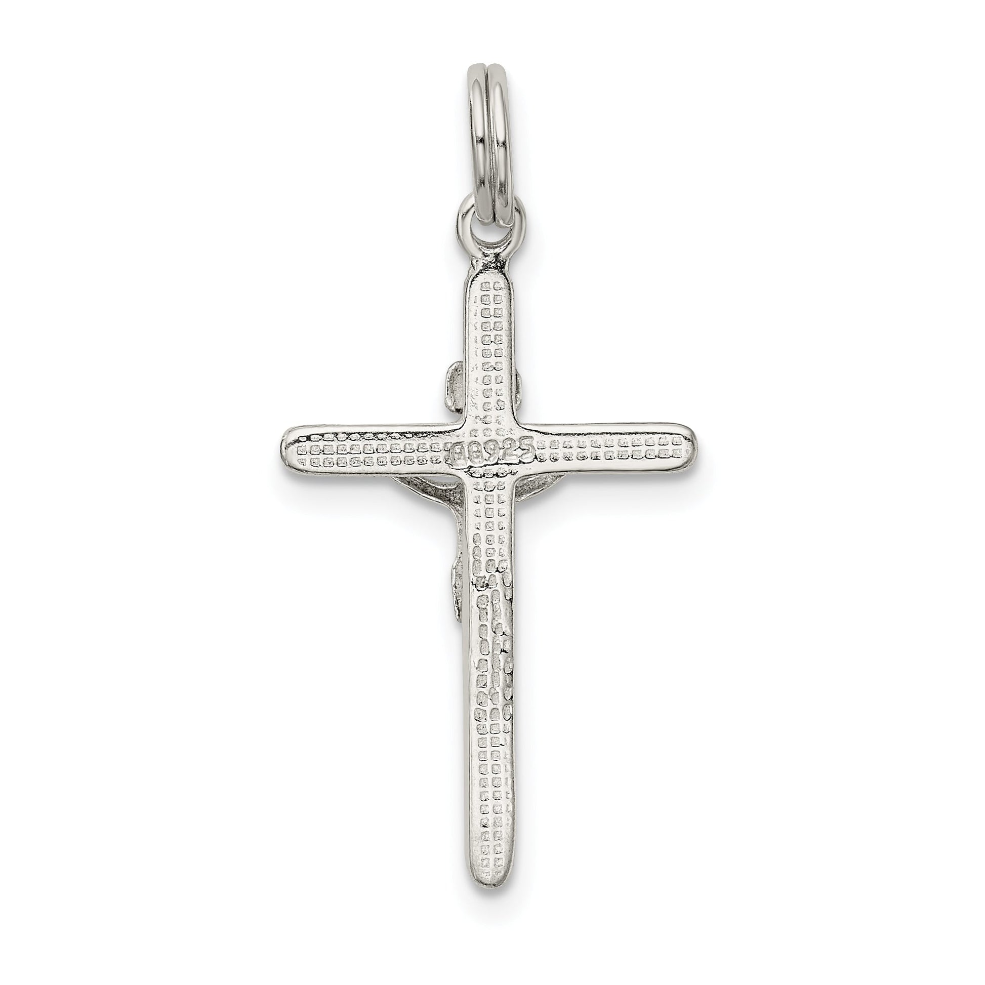 Embrace the elegance and spiritual significance of the Sterling Silver Polished INRI Crucifix Charm. Crafted from premium 925 sterling silver, this charm boasts a brilliantly polished finish. Its design features a detailed 3D crucifix with a solid construction for lasting wear. Measuring 31.5 mm in length and 15 mm in width, the charm's textured back adds depth to its intricate design. An anti-tarnish coating ensures this piece retains its pristine shine. Whether added to a necklace or bracelet, the Sterling Silver Polished INRI Crucifix Charm adds a timeless quality to any collection.