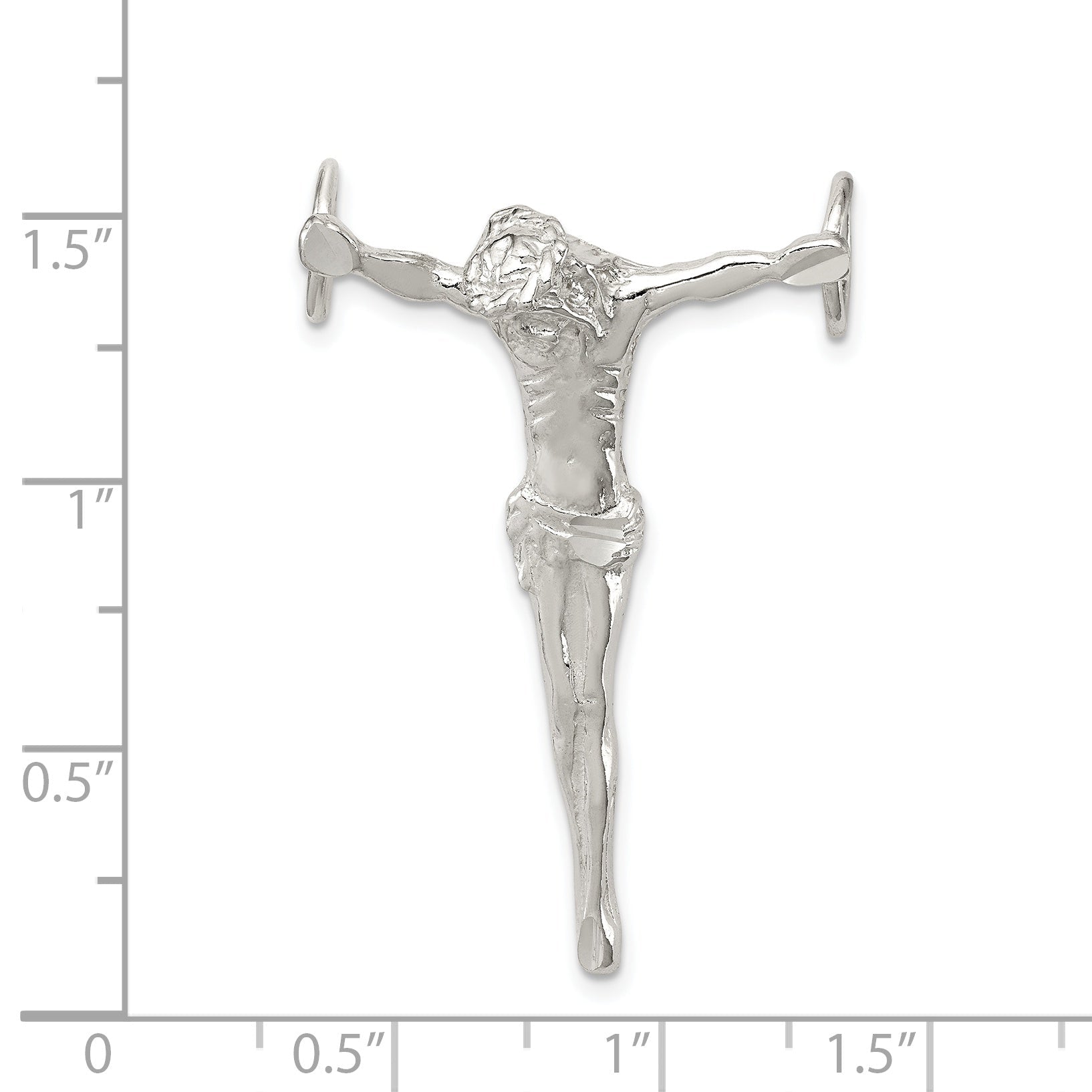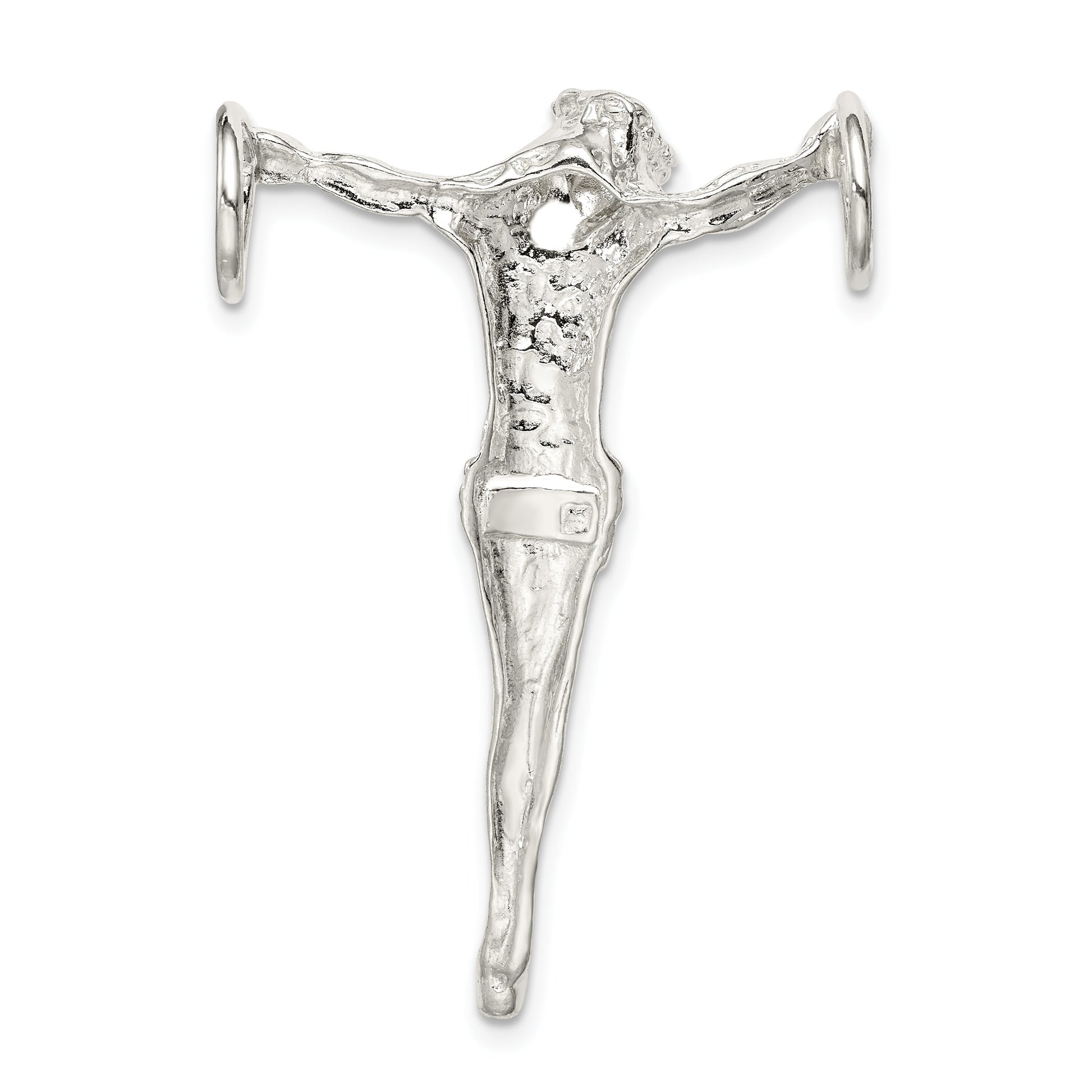 The Sterling Silver Polished Jesus Cross Chain Slide Pendant is a striking piece of fine jewelry. Crafted from 925 sterling silver, this pendant boasts a polished finish that catches the light beautifully. Measuring 38.60 mm in length, 6.50 mm in thickness, and 26.25 mm in width, its sturdy design ensures a lasting presence. The anti-tarnish coating keeps it shining bright while the concave profile adds depth. This solid pendant, made through precise casting, is perfect for those seeking a piece that marries faith and style. Elevate your collection with the timeless charm of this Jesus Cross Chain Slide Pendant.