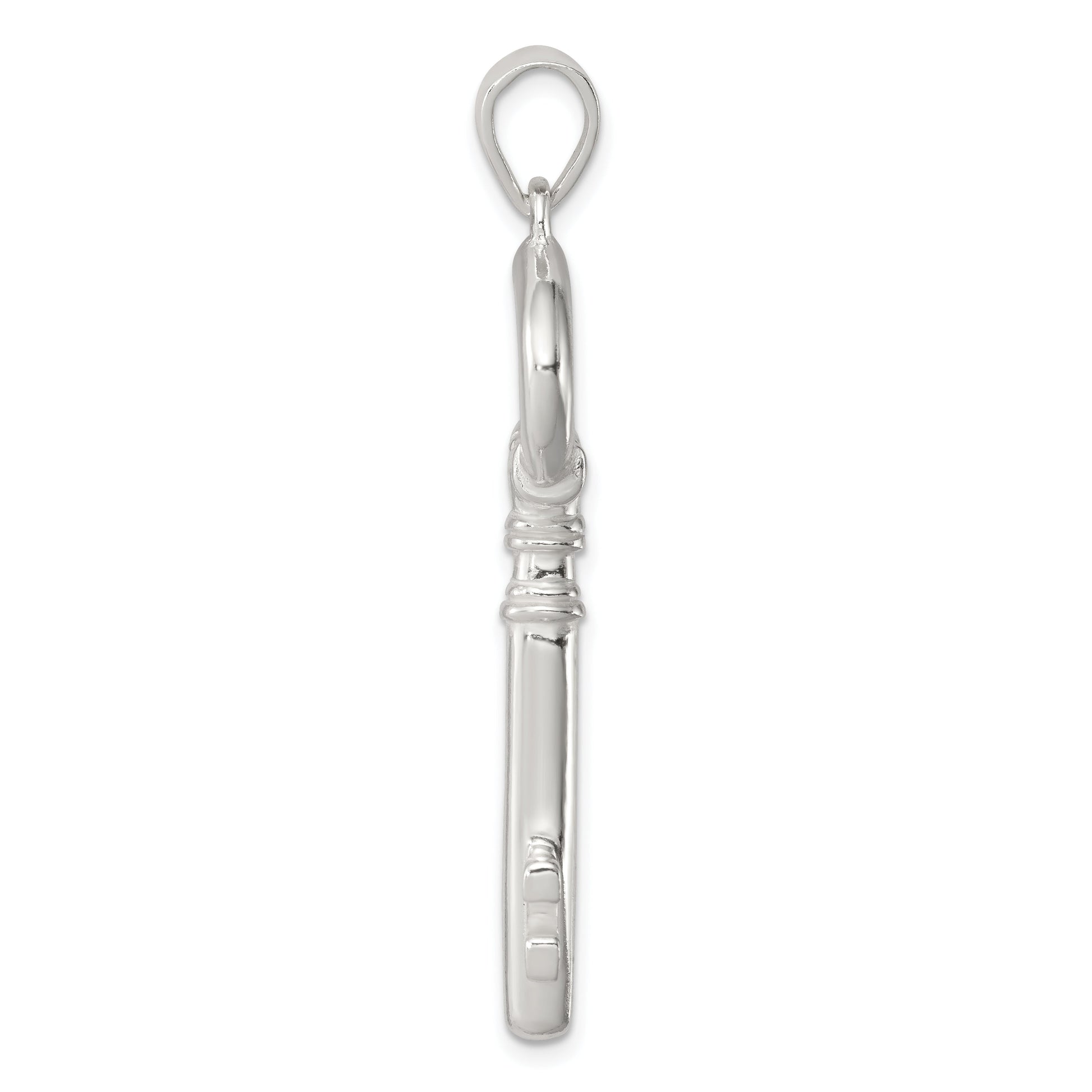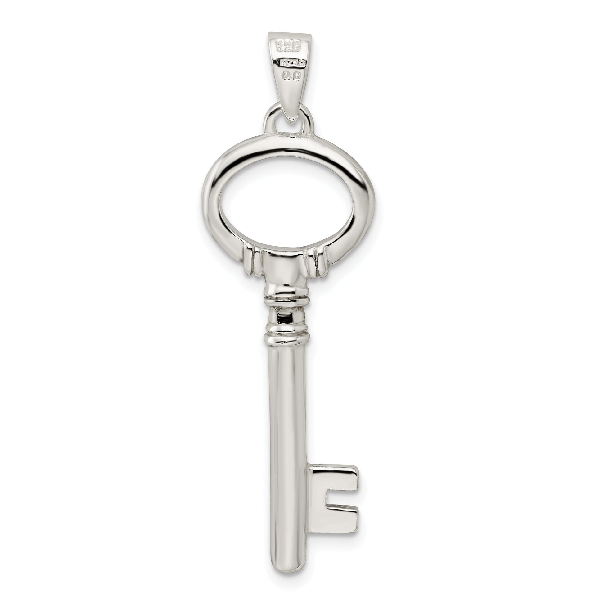 Unlock elegance with our Sterling Silver Polished Key Pendant. Crafted from 925 sterling silver, it boasts a lustrous polished finish that catches the eye. This themed pendant measures 49mm in length and 15mm in width, making it a bold statement piece. The casting process ensures durability while the anti-tarnish coating keeps it shining bright. Whether it's a gift or a treat for yourself, this pendant is a timeless piece that suits any outfit. Elevate your jewelry collection with the captivating charm of the Sterling Silver Polished Key Pendant.