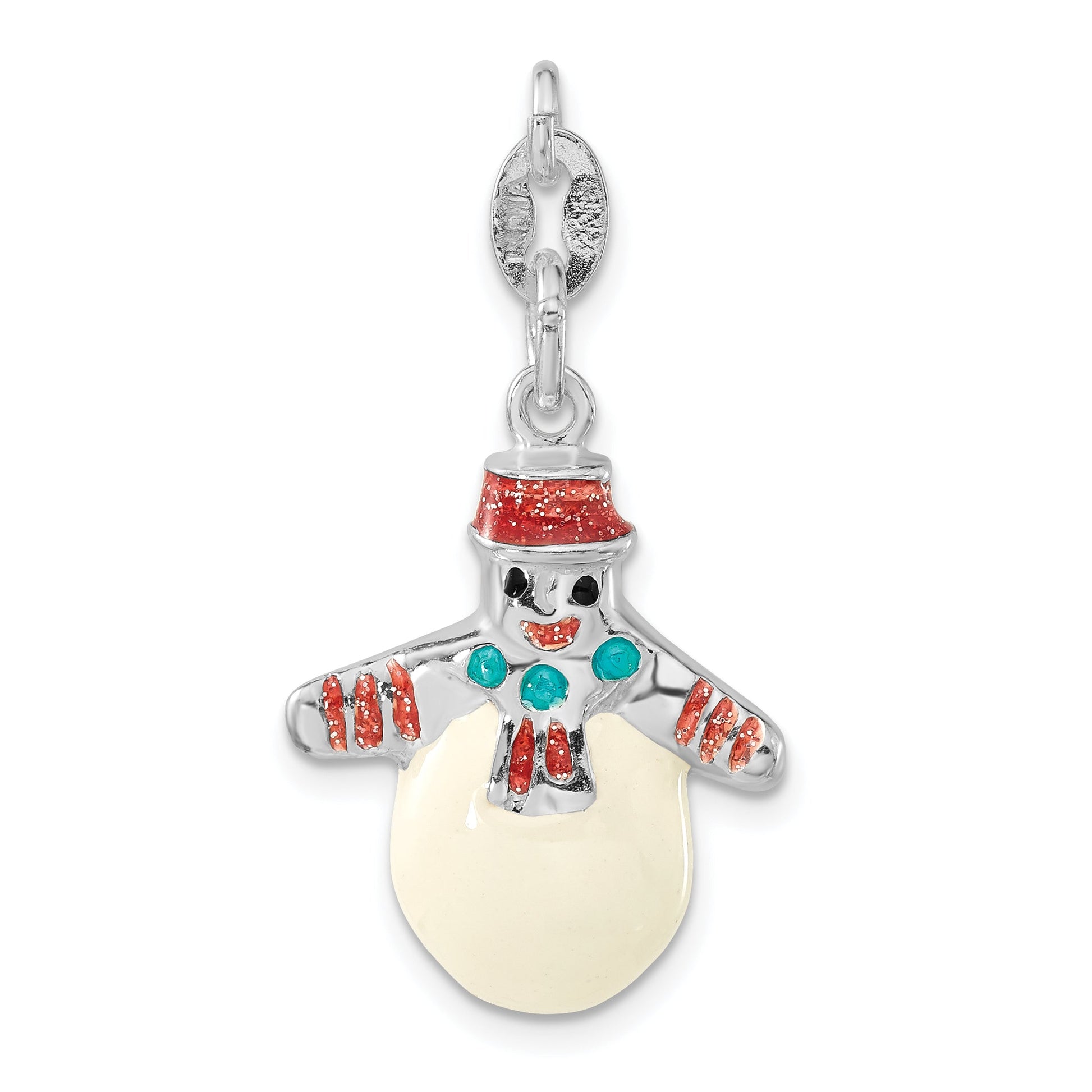 Embrace the holiday spirit with the Sterling Silver Polished Multicolor Enameled Snowman Charm. This delightful charm, crafted from high-quality 925 sterling silver, promises durability and timeless elegance. Its smooth polished finish and vibrant enamel accents bring a playful touch to any jewelry collection. Measuring 32.5 mm in length and 17.1 mm in width, this snowman charm stands out with its multicolor design. Suitable for all, this unisex charm makes a perfect festive addition. Elevate your style or gift a loved one with this Sterling Silver Polished Multicolor Enameled Snowman Charm.