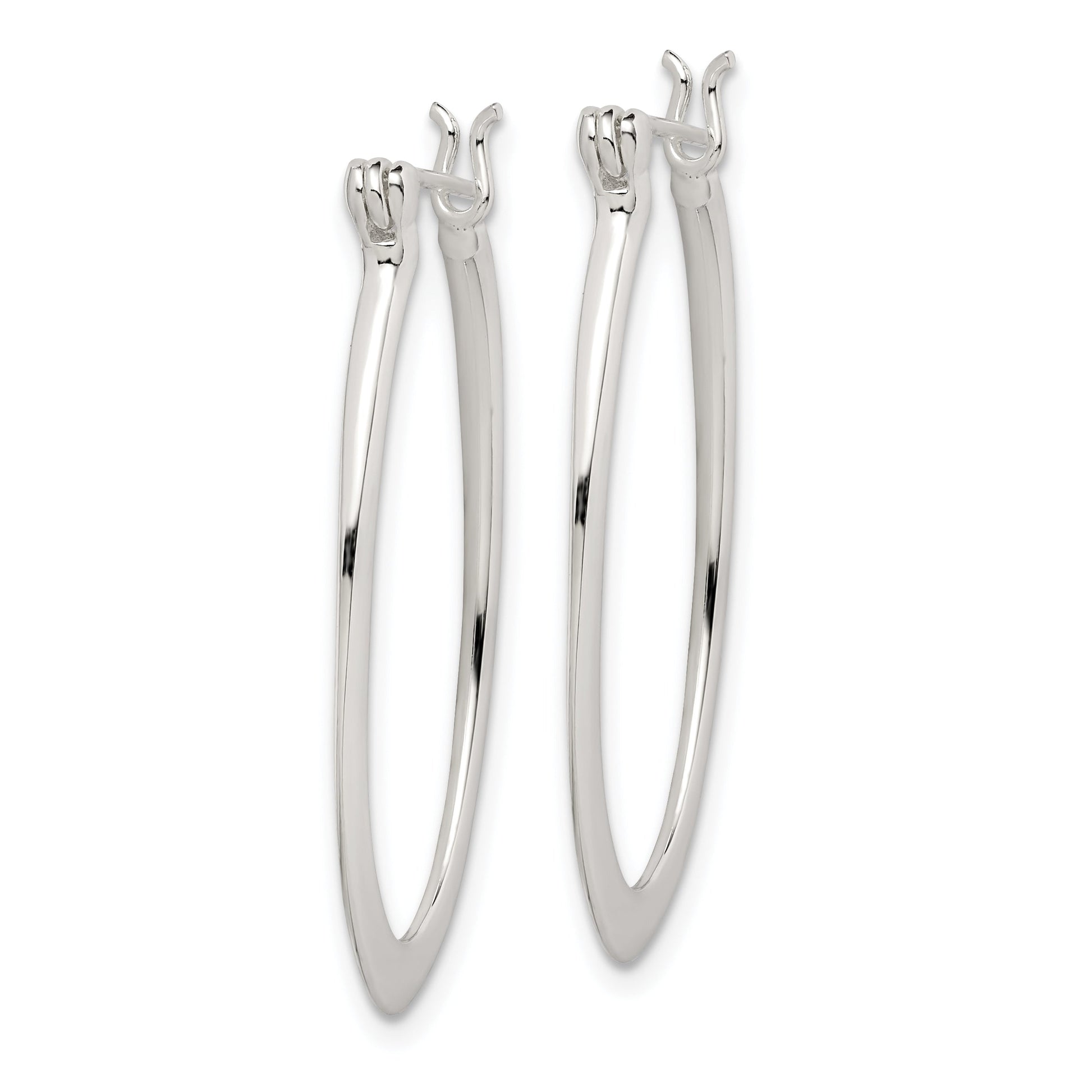 Meet your new go-to bling: Sterling Silver Polished & Tapered Oval Hoop Earrings. These gems are crafted from genuine 925 sterling silver, offering a lustrous polished finish that catches every ray of light. With a slender 2.25 mm thickness and an elegant 32 mm length, these hoop earrings boast a sleek oval shape that adds a chic touch to any look. The wire and clutch closure ensures a secure fit, making them perfect for daily wear or special occasions. These hoops are a timeless classic, sparkling with style and sophistication, sure to elevate your jewelry collection.