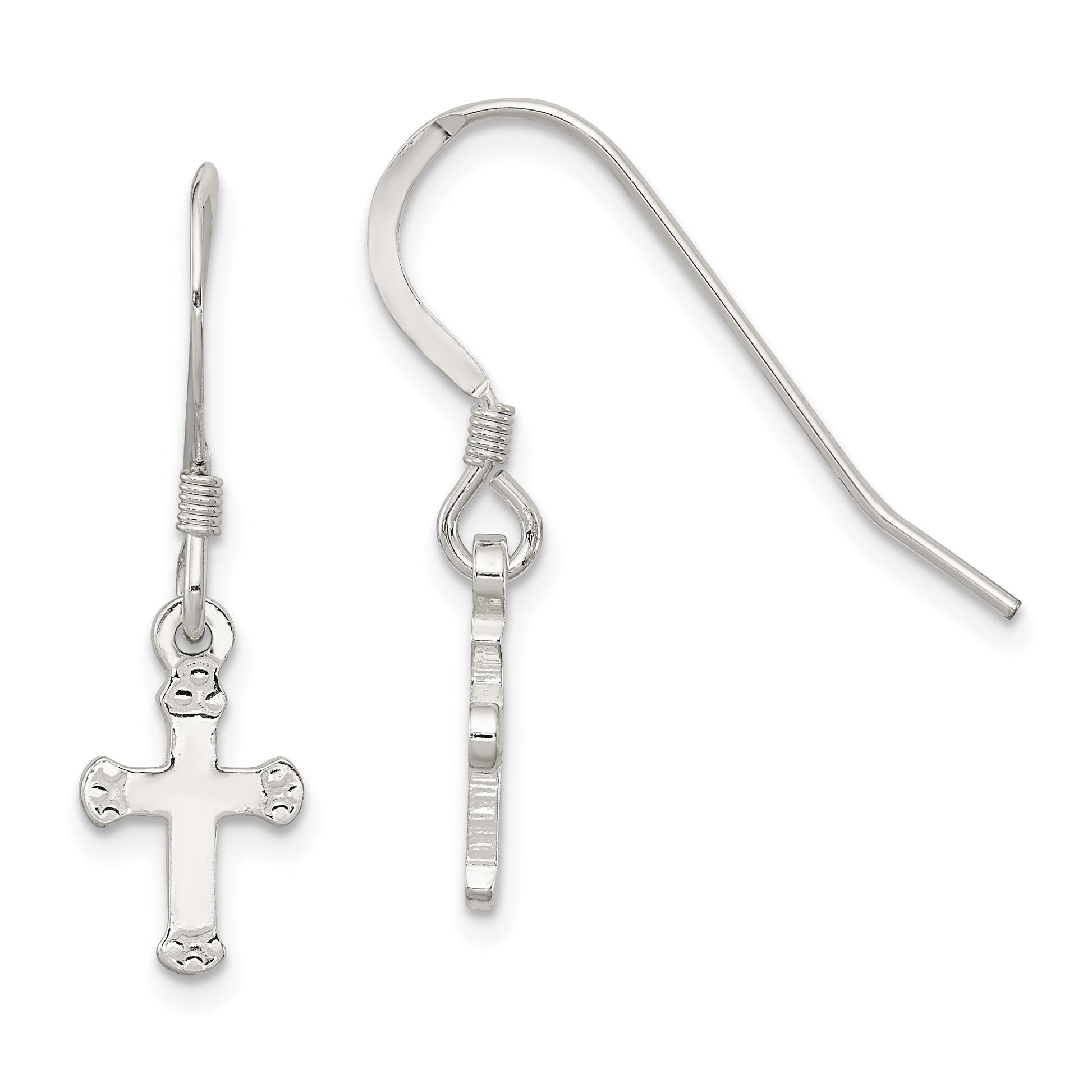 Step into elegance with the Sterling Silver Polished & Textured Cross Dangle Earrings. Expertly crafted from high-quality 925 sterling silver, each earring boasts a sleek polished finish and a unique textured design. Measuring 28mm in length and 8mm in width, these earrings offer a comfortable wear, complemented by an anti-tarnish coating for lasting shine. The solid construction ensures durability, while the classic French wire closure provides a secure fit. A perfect choice for women looking for stylish and versatile accessories, the Sterling Silver Polished & Textured Cross Dangle Earrings enhance any outfit with grace.
