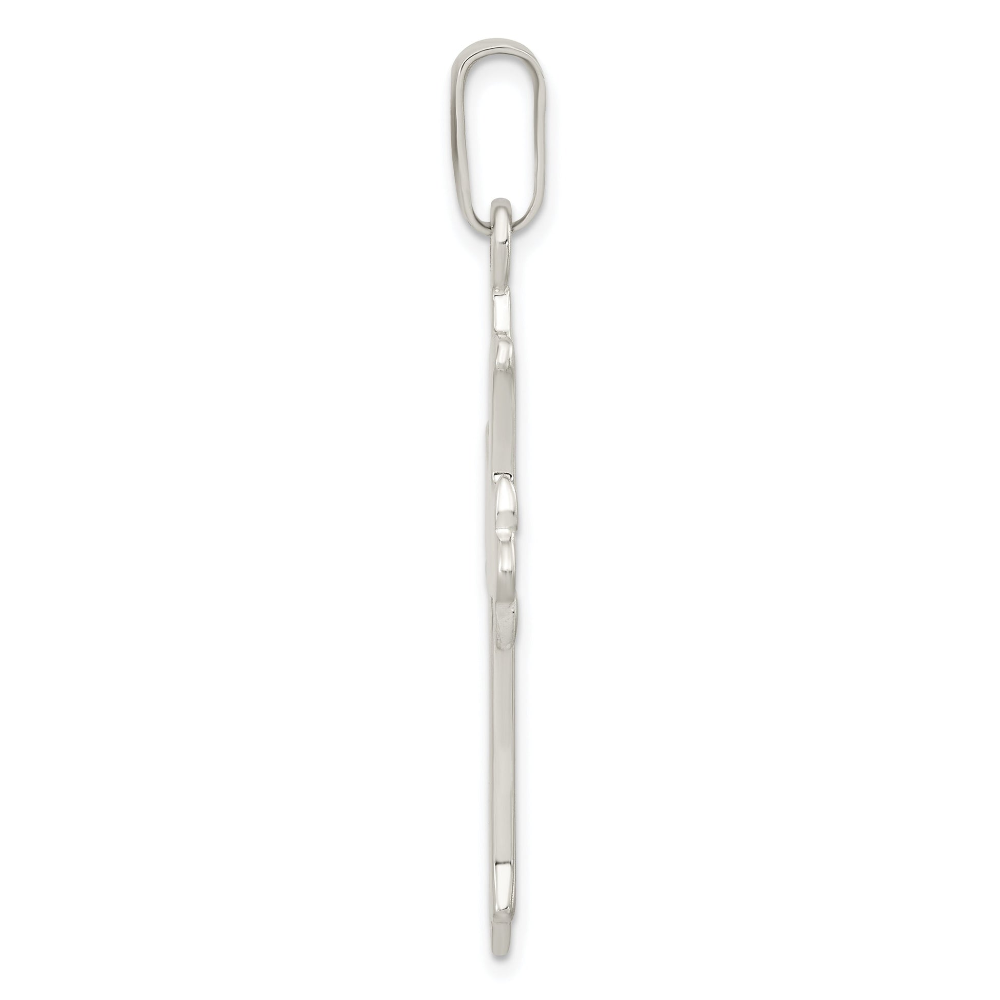 The Sterling Silver Polished Textured Cross Pendant offers a stunning blend of elegance and craftsmanship. Made from 925 sterling silver, it features a polished finish and a striking textured design. With a cross measuring 33.53 mm in length and 25.2 mm in width, this pendant stands out elegantly. The piece includes an anti-tarnish coating to maintain the silver's brilliant shine. Its solid construction ensures durability, while the flat back design offers comfort. The Sterling Silver Polished Textured Cross Pendant is an exquisite choice, whether for everyday wear or special occasions.