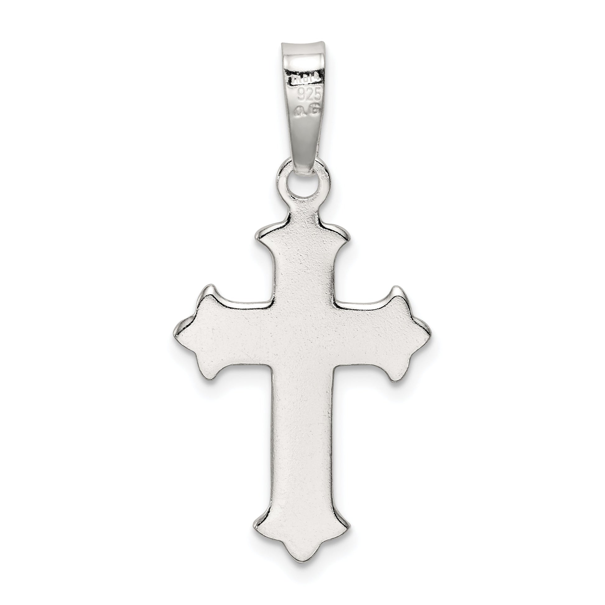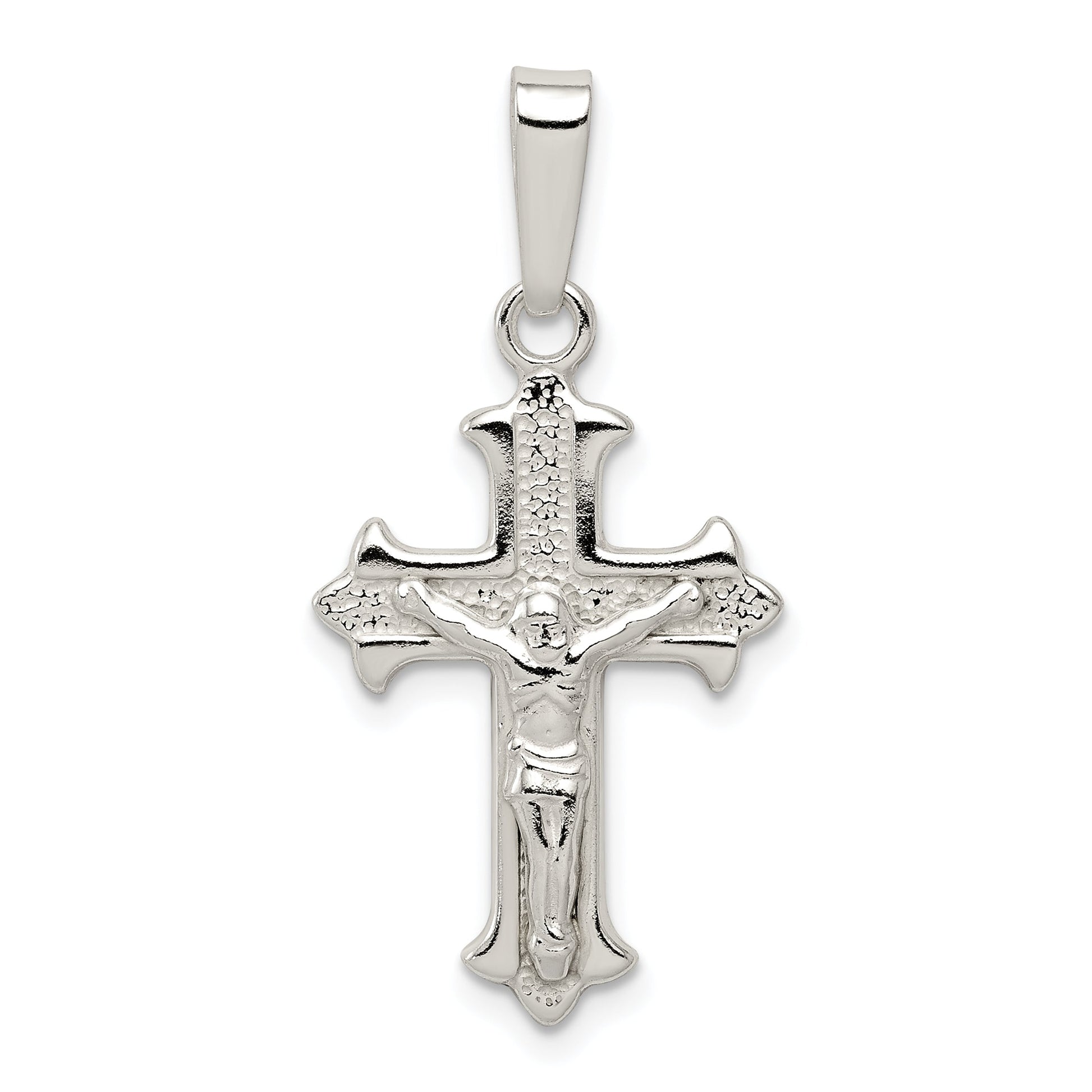 The Sterling Silver Polished Textured Crucifix Pendant is a stunning piece of fine jewelry. Crafted from high-quality 925 sterling silver with an anti-tarnish finish, it boasts a solid build and an exquisite polished look. The crucifix measures 32.50 mm in length, 16 mm in width, and 2.40 mm in thickness, offering both elegance and durability. Its flat-back profile ensures a comfortable fit, making it a perfect accessory for everyday wear or special occasions. Enhance your collection with this themed pendant and let the Sterling Silver Polished Textured Crucifix Pendant shine brightly around your neck.