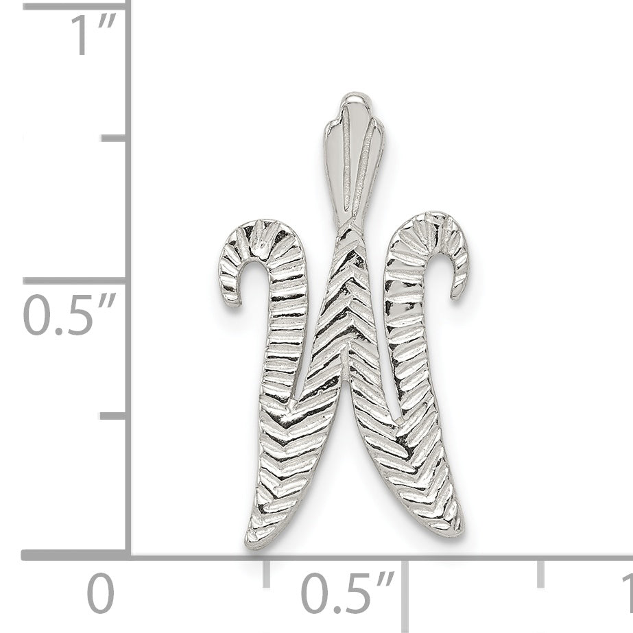The Sterling Silver Polished & Textured Letter W Initial Chain Slide offers a chic touch to any jewelry collection. Crafted from solid 925 sterling silver, this pendant shines with its polished and textured finish. The anti-tarnish coating ensures lasting beauty and luster. Designed from a casting process, it boasts durability and style. The pendant's versatile white tone makes it a timeless piece, seamlessly enhancing any outfit. Wear the Sterling Silver Polished & Textured Letter W Initial Chain Slide for a personal flair that stands out, bringing elegance and sophistication to your look.