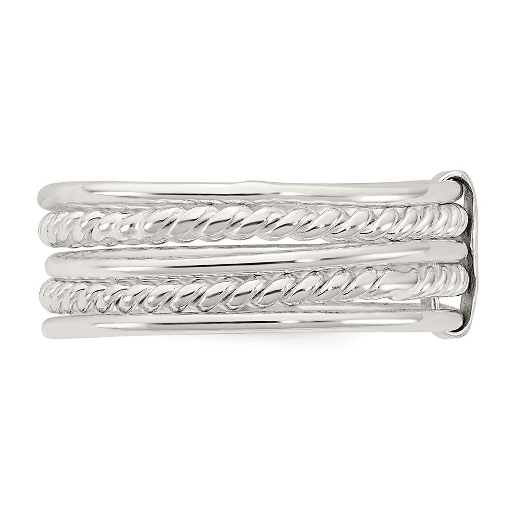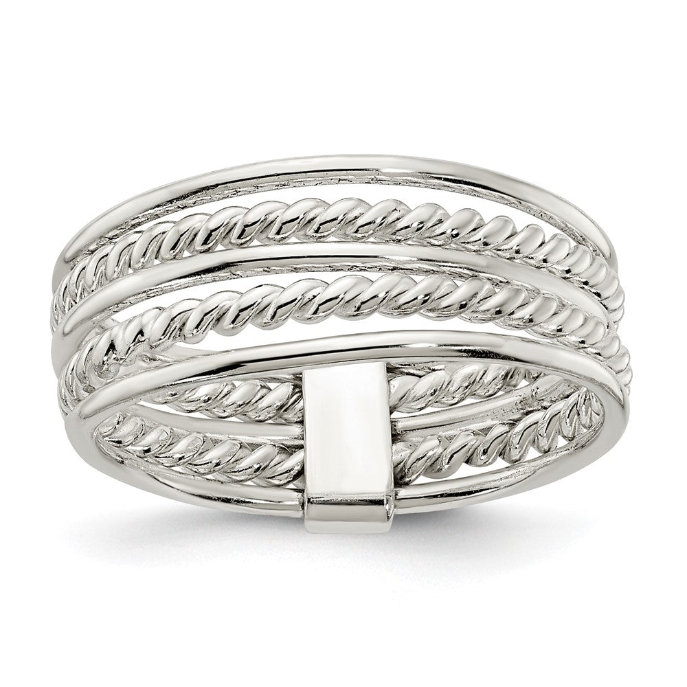 The Sterling Silver Polished & Twisted Multiple Attached Rings are perfect for women who want to add a touch of style to their look. This fashion ring features a textured design that stands out. Crafted from 925 sterling silver, it boasts a high-polish finish that makes it shine. The ring measures 7.85 mm wide and has a round shape, fitting comfortably on the finger. Designed to be eye-catching, the multiple attached bands give it a unique twist. Make a bold statement with the Sterling Silver Polished & Twisted Multiple Attached Rings, a true gem for your jewelry collection.