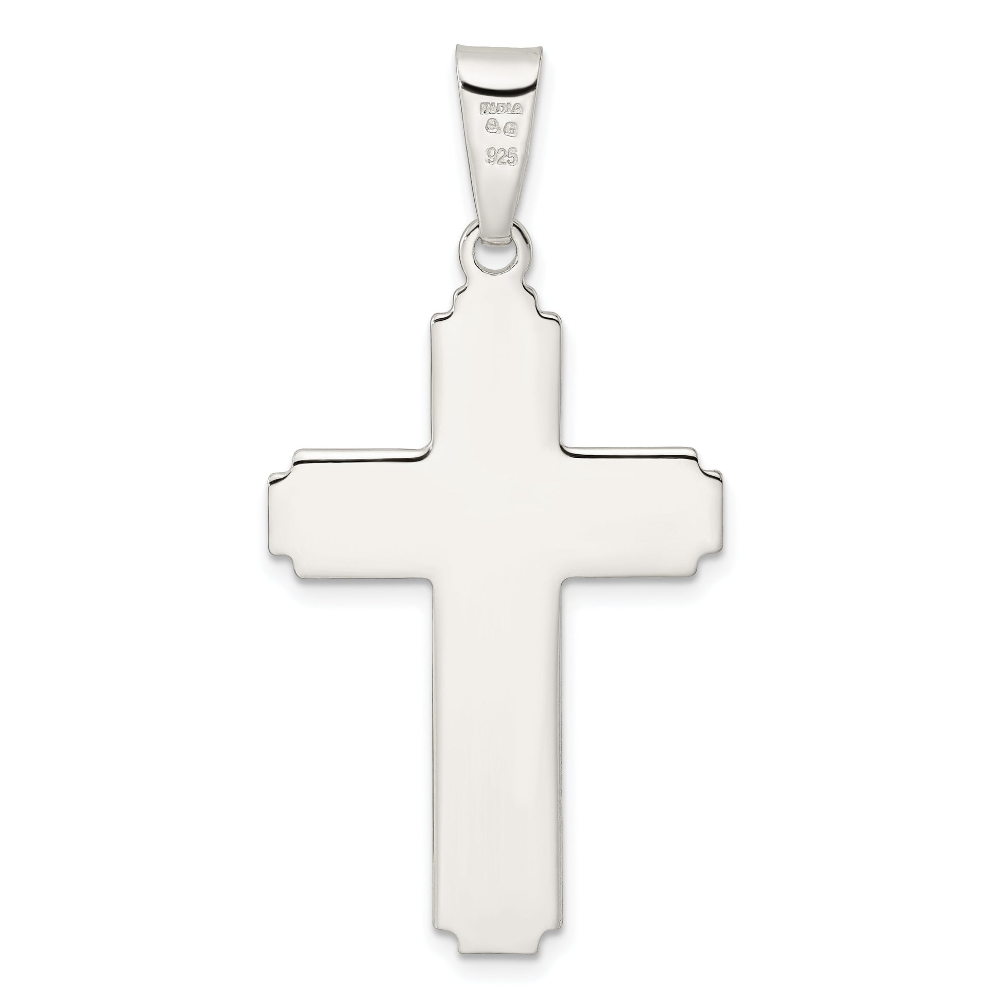 Discover elegance with the Sterling Silver Polished W/Edge Lines Latin Cross Pendant. This exquisite piece, crafted from 925 sterling silver, boasts a brilliant polished finish sure to catch the eye. The pendant measures 48.32 mm in length and features a charm with edge lines for added detail. With an anti-tarnish coating, this pendant retains its pristine white hue. Designed for women, its sleek form includes a 4.5 mm bail. The Sterling Silver Polished W/Edge Lines Latin Cross Pendant is a timeless symbol of faith and style.