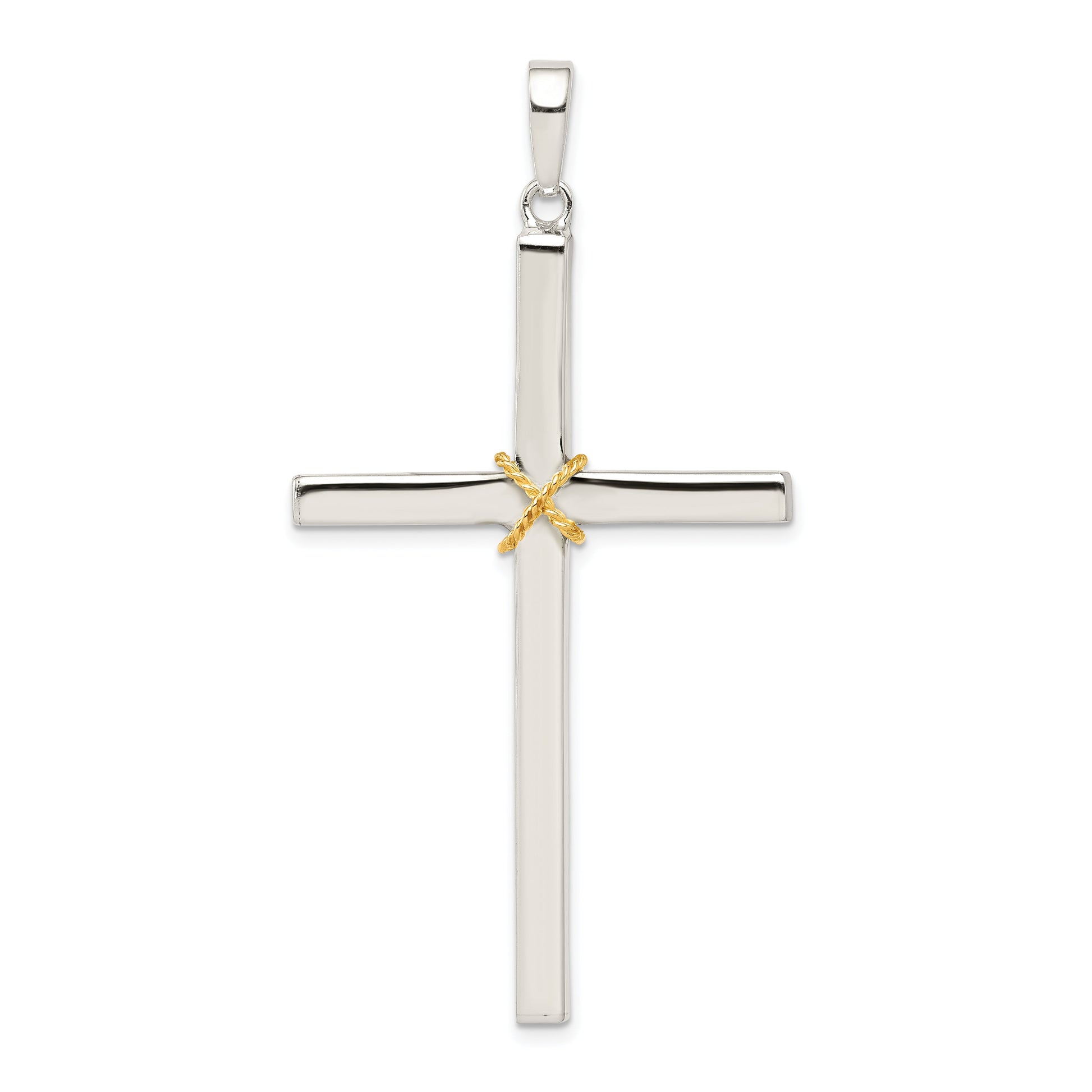 Meet the Sterling Silver Polished with Gold-Plated Rope Hollow Crucifix Pendant, a beautiful mix of craftsmanship and faith. Crafted with 925 sterling silver, this pendant has a gold-plated rope design that surrounds a detailed crucifix. The pendant measures 48.5 mm in length and 30.65 mm in width, offering an ideal size for everyday elegance. Its anti-tarnish coating ensures lasting shine, while the cleverly hollow design reduces weight without compromising durability. Perfect for personal wear or as a thoughtful gift, the Sterling Silver Polished with Gold-Plated Rope Hollow Crucifix Pendant stands out as a symbol of style and devotion.