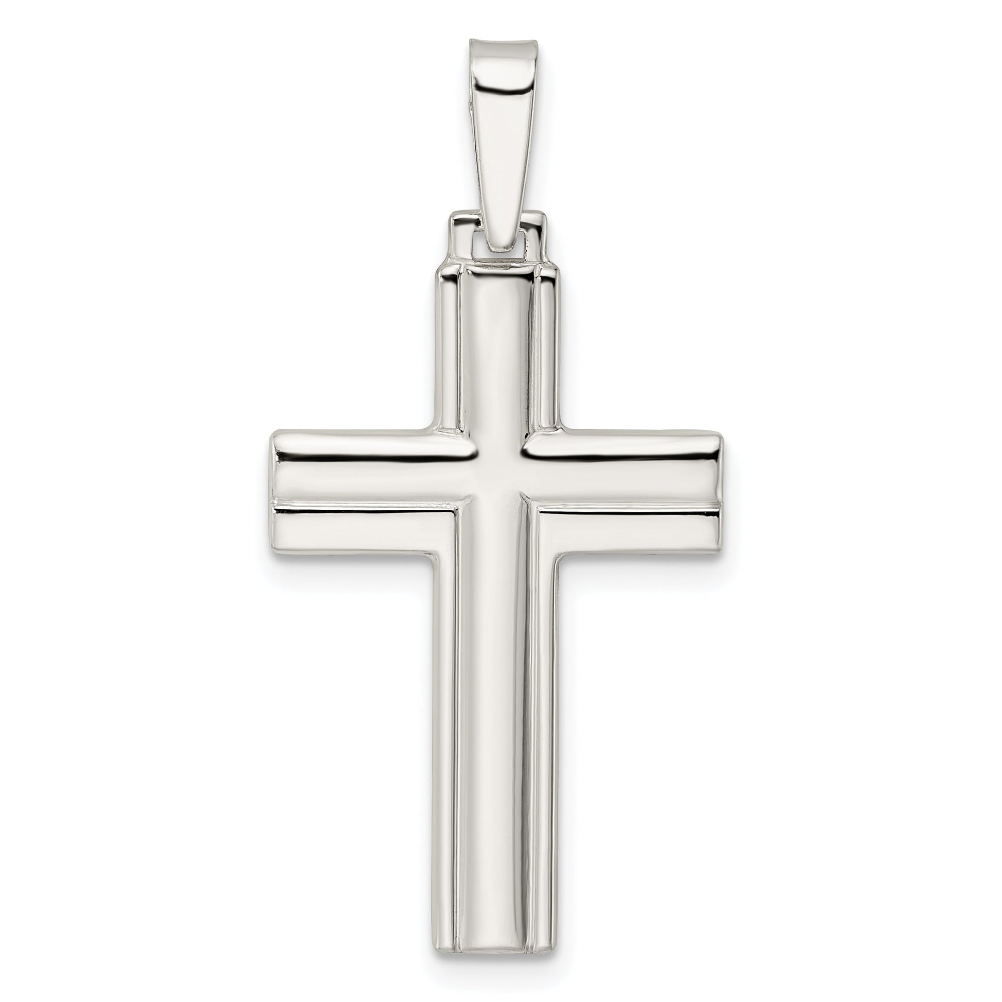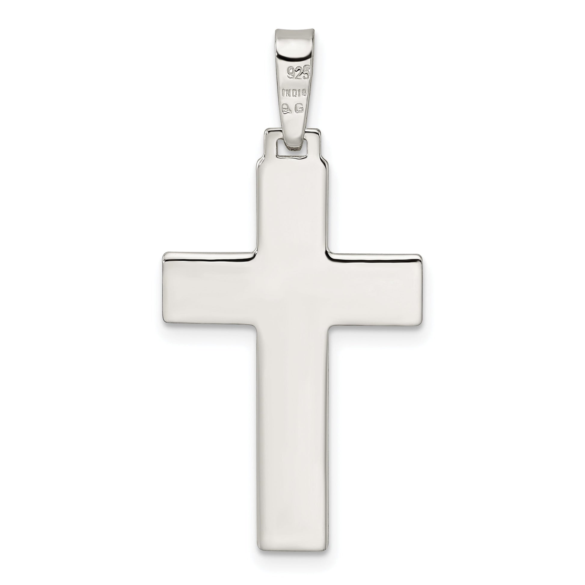 Elevate your style with the Sterling Silver Polished with Lines Latin Cross Pendant. This women's pendant, crafted from high-quality 925 sterling silver, features a sleek polished finish that shines with unmatched elegance. Its dimensions include a length of 36.05 mm and a width of 17.95 mm, offering a perfect blend of subtlety and presence. The pendant is designed to resist tarnishing, ensuring its beauty lasts. A bail width of 2.7 mm completes the design, allowing versatile pairing with your favorite chains. Let the Sterling Silver Polished with Lines Latin Cross Pendant be the timeless addition to your jewelry collection.