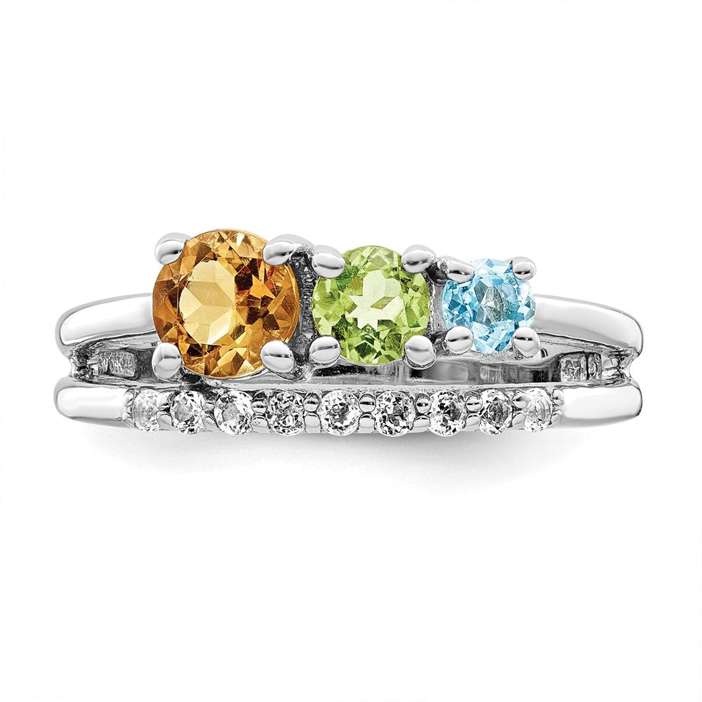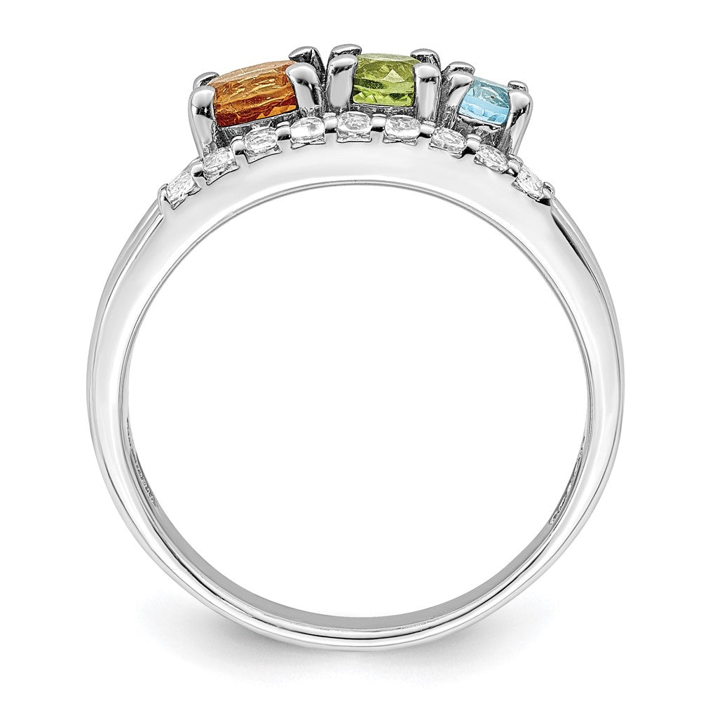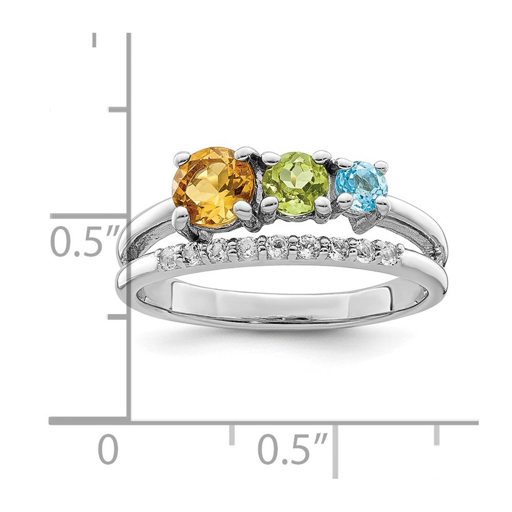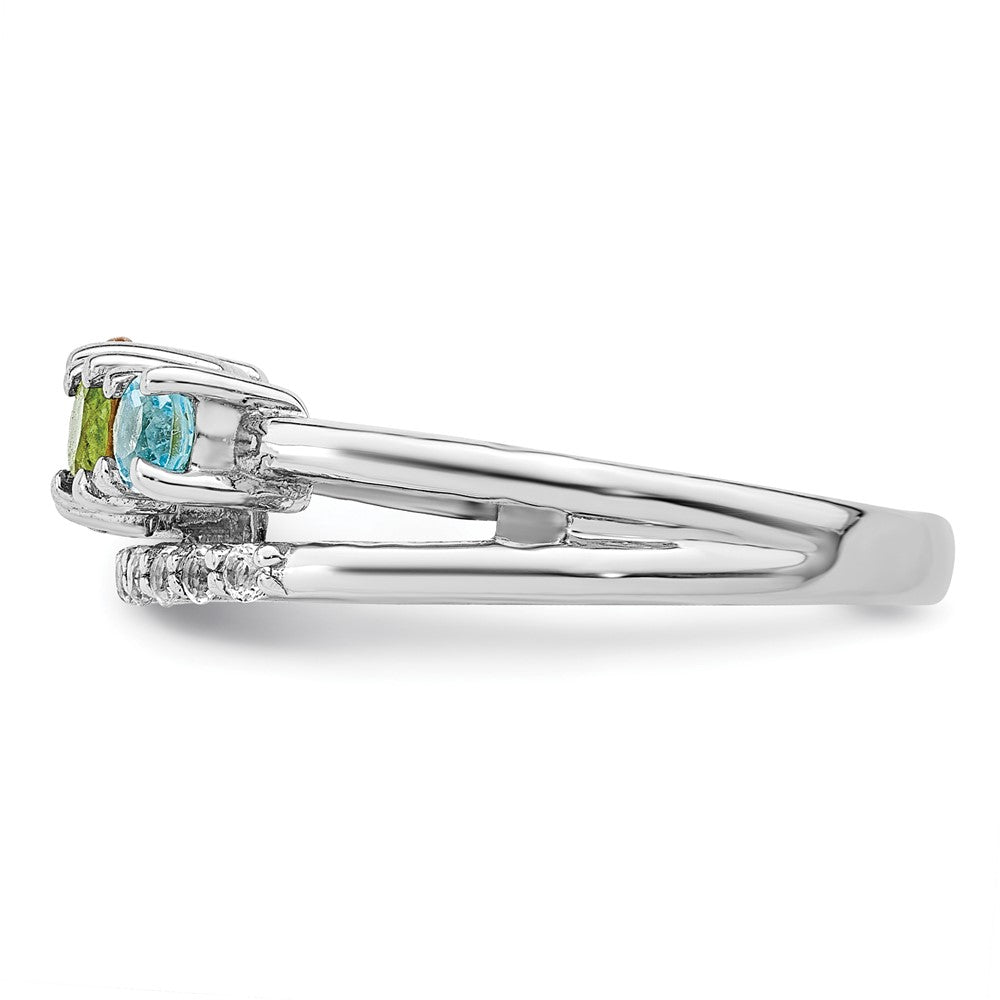 The Sterling Silver Rh-Plated .95T.W. Ci/Pe/Bt/Wt Circle Bypass Ring is a stunning piece designed to catch the eye. Crafted from pure sterling silver and finished with a shiny rhodium coat, this ring offers both strength and shimmer. It features a mix of four natural, round-cut gemstones — citrine, peridot, Swiss blue topaz, and white topaz — each set in a circle for a unique look. The band measures just 2.45 mm wide, making it comfortable for daily wear. Whether you want a special gift or a treat for yourself, the Sterling Silver Rh-Plated .95T.W. Ci/Pe/Bt/Wt Circle Bypass Ring adds a vibrant, elegant touch to any outfit.