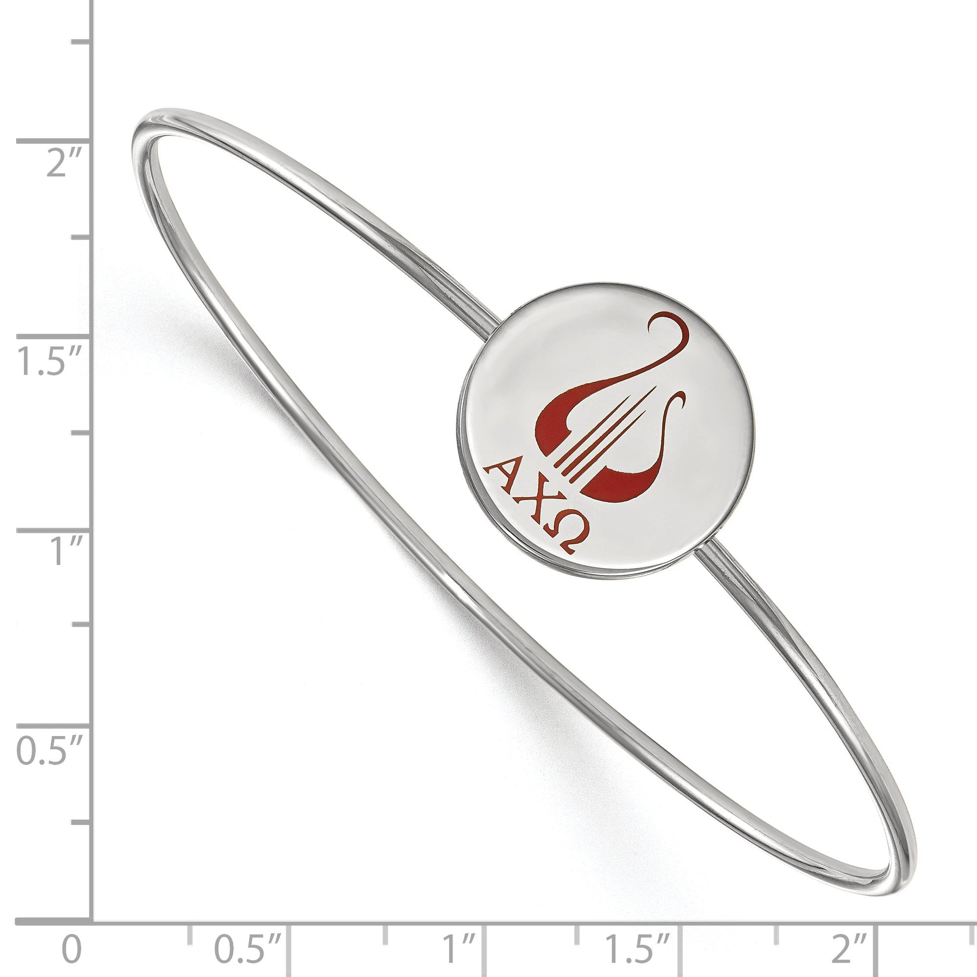 The Sterling Silver Rh-Plated Logoart Alpha Chi Omega Enameled Slip-On Bangle is a stylish piece you’ll love. Crafted from high-quality 925 sterling silver, this bracelet is coated with a shiny rhodium finish for a sleek silver look. It features a bold 19 mm enameled charm that displays the Alpha Chi Omega logo, adding a touch of pride and elegance. The 8-inch slip-on design makes it easy to wear, fitting comfortably on most wrists. Whether worn alone or paired with other jewelry, the Logoart Alpha Chi Omega bangle offers a classic style with a meaningful touch for any jewelry lover.