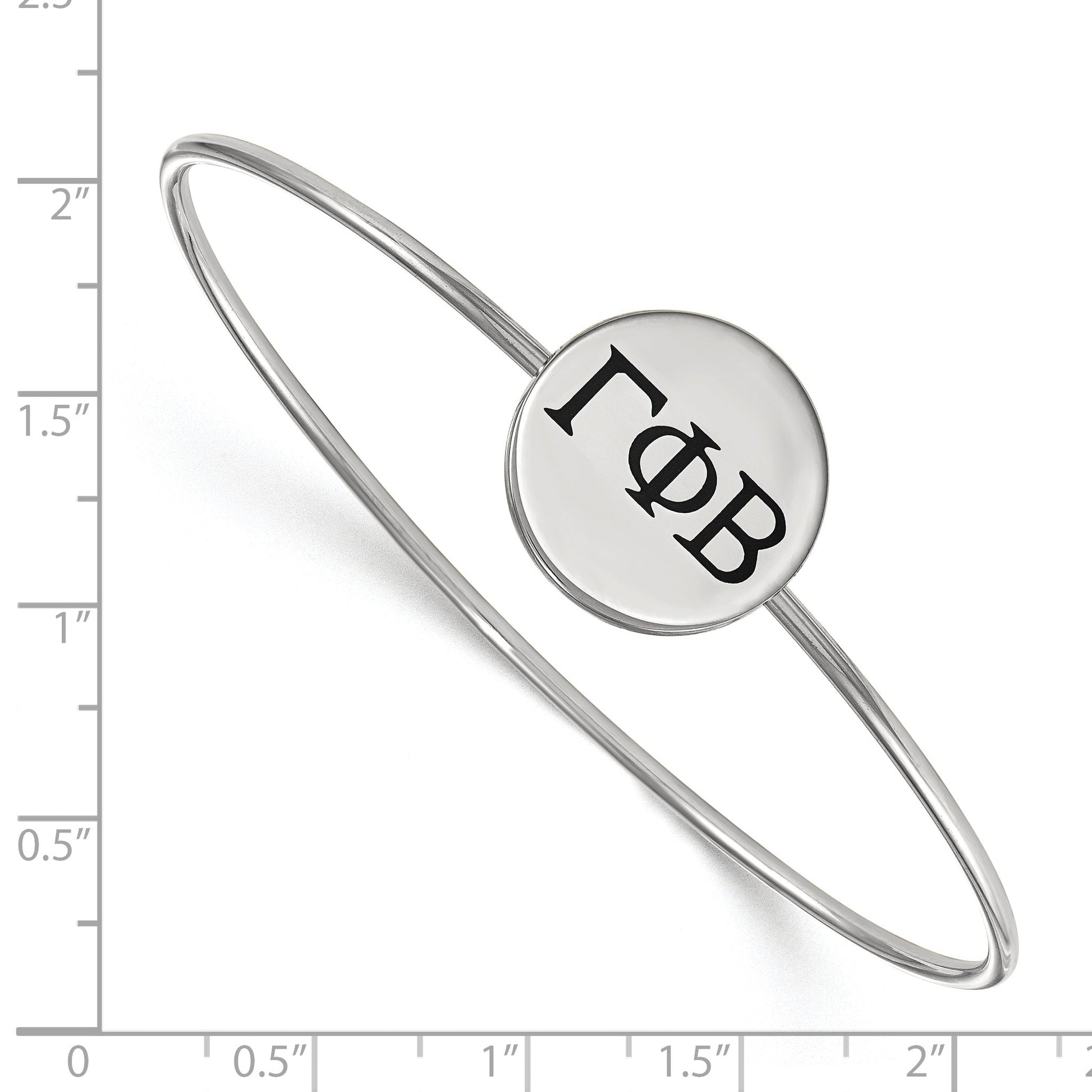 Show off your sorority pride with the LogoArt Gamma Phi Beta Enameled Slip-On Bangle. Crafted from premium 925 sterling silver, this bracelet shines with a polished finish and features a sleek black enamel accent. It measures 7 inches long with a 2 mm band, making it a bold yet comfortable accessory. The rhodium plating adds extra shine and durability. Designed for easy wear, it slips right on without a clasp. Represent your school spirit with this stylish piece, perfect for everyday use or special occasions. The LogoArt Gamma Phi Beta Enameled Slip-On Bangle is a great way to show your sorority loyalty.