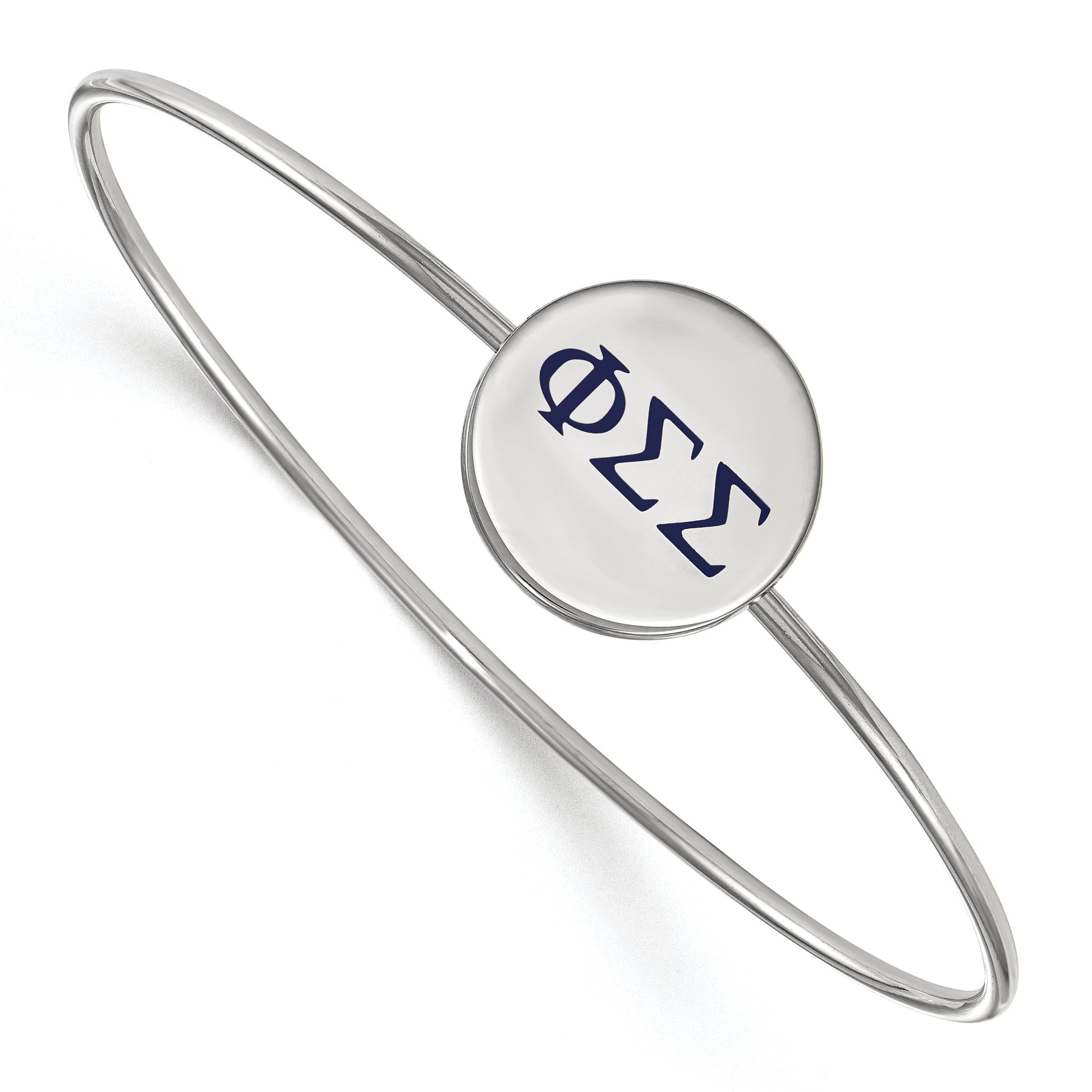 Make a statement with the Sterling Silver Rh-Plated Logoart Phi Sigma Enameled Slip-On Bangle. Crafted from 925 sterling silver, this bracelet shines with a polished finish and features a sleek 2mm band. The enameled charm in bold King Blue adds a pop of color and school pride. Designed to slip on easily, it’s comfortable and stylish for daily wear. With a length of 7 inches, it fits most wrists perfectly. Show your sorority spirit with the Phi Sigma Sigma logo on this eye-catching piece. The Sterling Silver Rh-Plated Logoart Phi Sigma Enameled Slip-On Bangle combines quality and appeal in a simple, modern design.