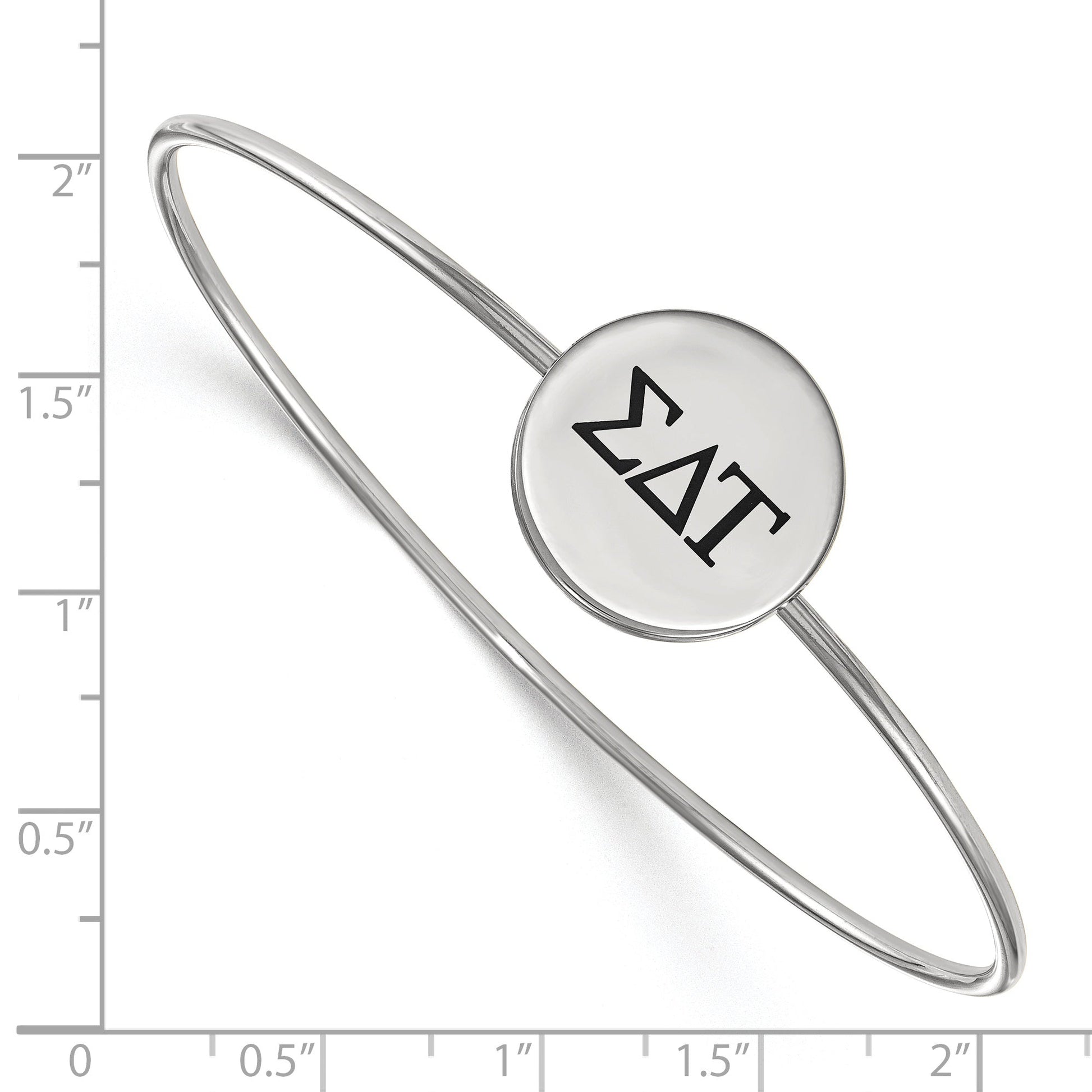 Celebrate your sorority pride with the Sterling Silver Rh-Plated Logoart Sigma Delta Tau Enameled Slip-On Bangle. Crafted from genuine sterling silver, this 8-inch bracelet shines with a sleek rhodium finish that resists tarnish. The 2 mm wide band offers a comfortable fit, while the 19 mm enameled Sigma Delta Tau logo adds a bold touch of spirit. Perfect for daily wear or special events, this stylish piece blends quality and charm. Show off your sisterhood with the Sterling Silver Rh-Plated Logoart Sigma Delta Tau Enameled Slip-On Bangle, a timeless accessory that truly stands out.