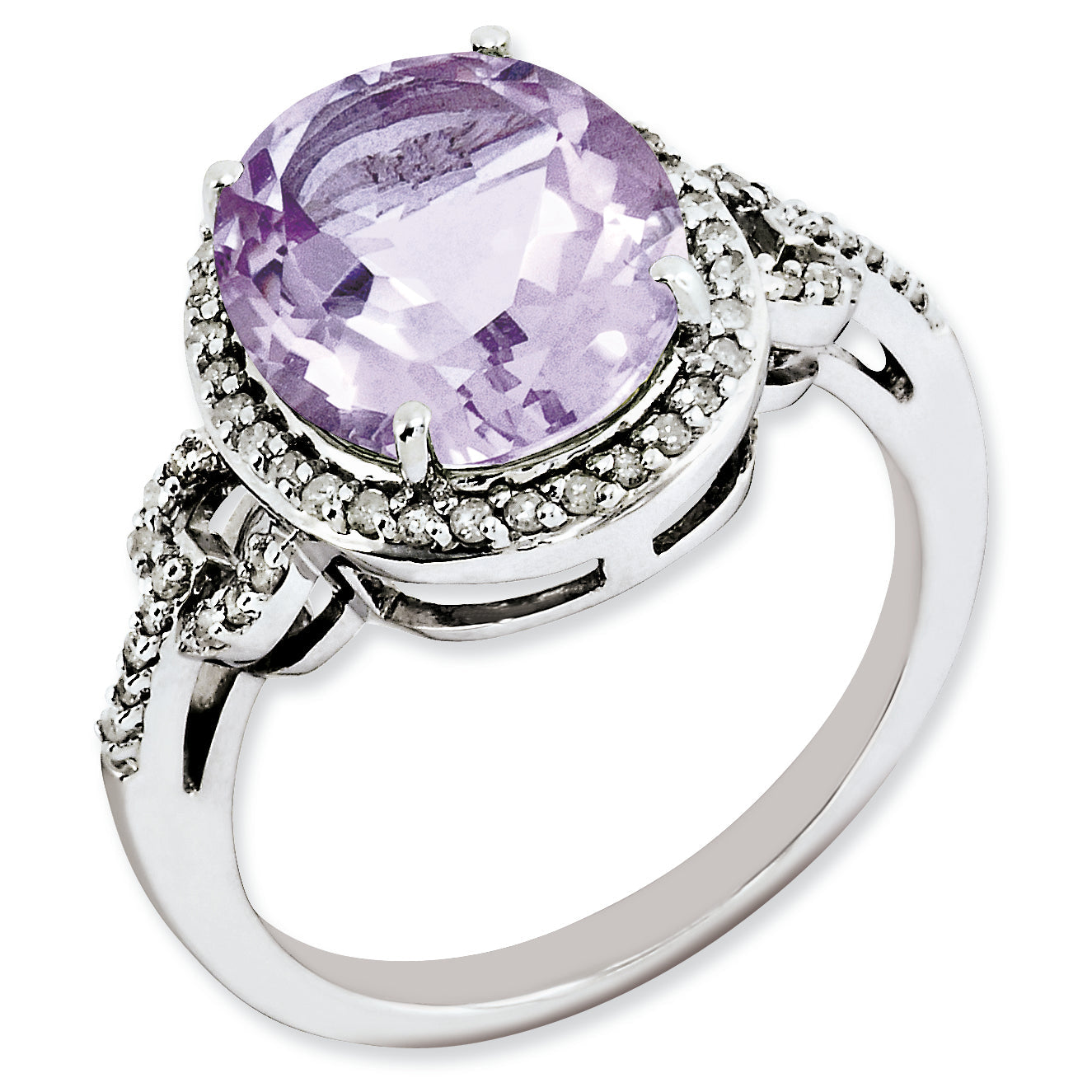 Discover the Sterling Silver Rh-Plated Oval Diamond & Checker-Cut Pink Quartz Ring, a stunning piece that blends elegance with sparkle. The ring features a bold 12x10mm oval Rose de France amethyst and a sparkling 4.55 carat diamond, both chosen for their natural beauty. The checkerboard cut of the quartz adds dimension, while the rhodium plating enhances durability and shine. Crafted from pure sterling silver, this February birthstone jewelry promises to impress with its vibrant purple hue and quality finish. Perfect for adding a touch of glam to any look, the Sterling Silver Rh-Plated Oval Diamond & Checker-Cut Pink Quartz Ring is a must-have for jewelry lovers.