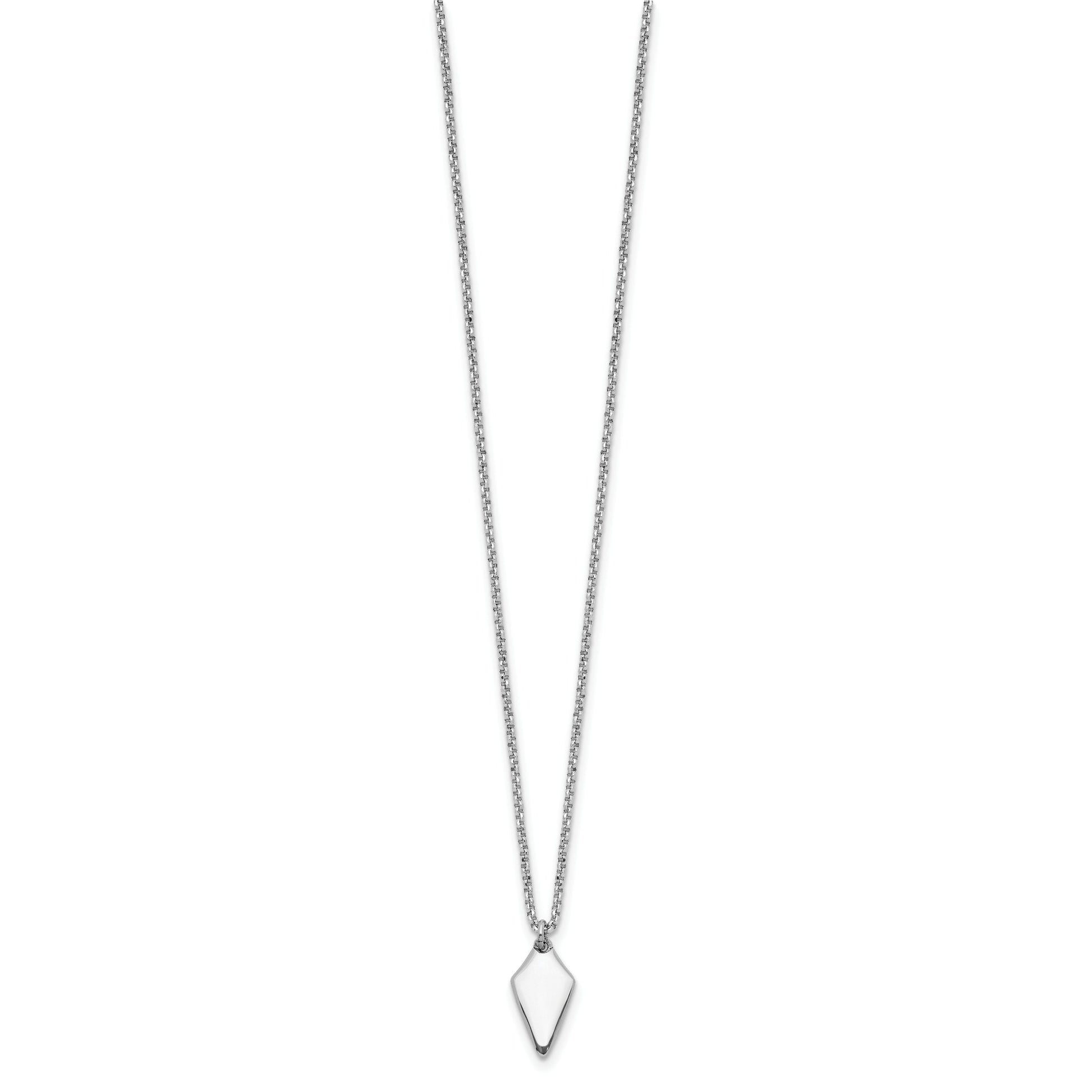The Sterling Silver Rh-Plated Polished Arrowhead Necklace is a sleek piece perfect for everyday wear. Made from high-quality 925 sterling silver, it features a shiny, polished look that catches the eye. The necklace measures 17.5 inches with a 16.5-inch chain, offering a comfortable fit. Its lightweight design makes it easy to wear all day. A stylish arrowhead charm, about 14.7 mm long and 7.2 mm wide, adds a bold touch. The lobster clasp and 1-inch extender make it simple to adjust. The Sterling Silver Rh-Plated Polished Arrowhead Necklace is a fresh choice for women who love clean, modern jewelry.