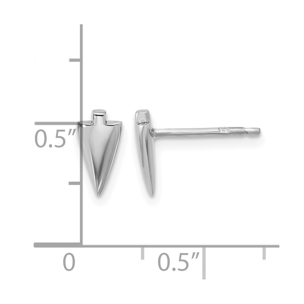 The Sterling Silver Rh-Plated Polished Arrowhead Post Earrings are perfect for adding a sleek touch to any outfit. Crafted from 925 sterling silver with a durable rhodium finish, these earrings feature a sharp arrowhead design that stands out. At just 9.1 mm long and 4.95 mm wide, they provide a subtle yet bold look. The button style with post and push-back closure makes them easy to wear all day. These earrings are designed for women seeking stylish jewelry that lasts, backed by a lifetime guarantee. Elevate your jewelry game with the Sterling Silver Rh-Plated Polished Arrowhead Post Earrings.