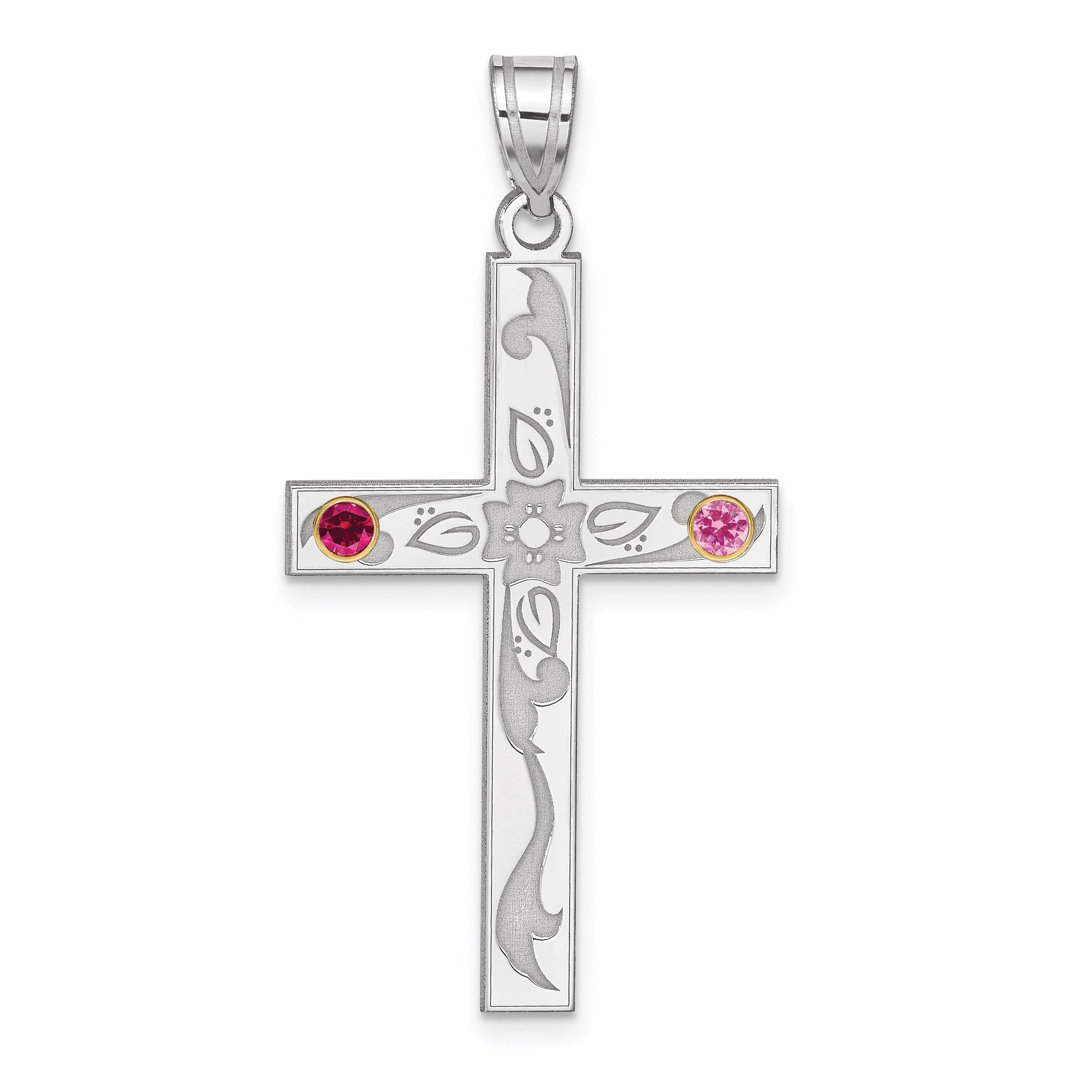 Introducing the Sterling Silver Rhodium-Plated 14K Bezel Crystal Family Cross Pendant, a stylish piece that adds a touch of elegance to any look. Crafted from high-purity 925 sterling silver, this pendant showcases a brilliant rhodium plating that enhances its durability and luster. The cross is adorned with crystals tailored to your preference, ensuring unmatched personalization and charm. Its highlighted yellow accents provide a subtle contrast that captivates the eye. Measuring 37mm in length and 21mm in width, this pendant perfectly balances size and sophistication, making the Sterling Silver Rhodium-Plated 14K Bezel Crystal Family Cross Pendant an exquisite addition to your jewelry collection.