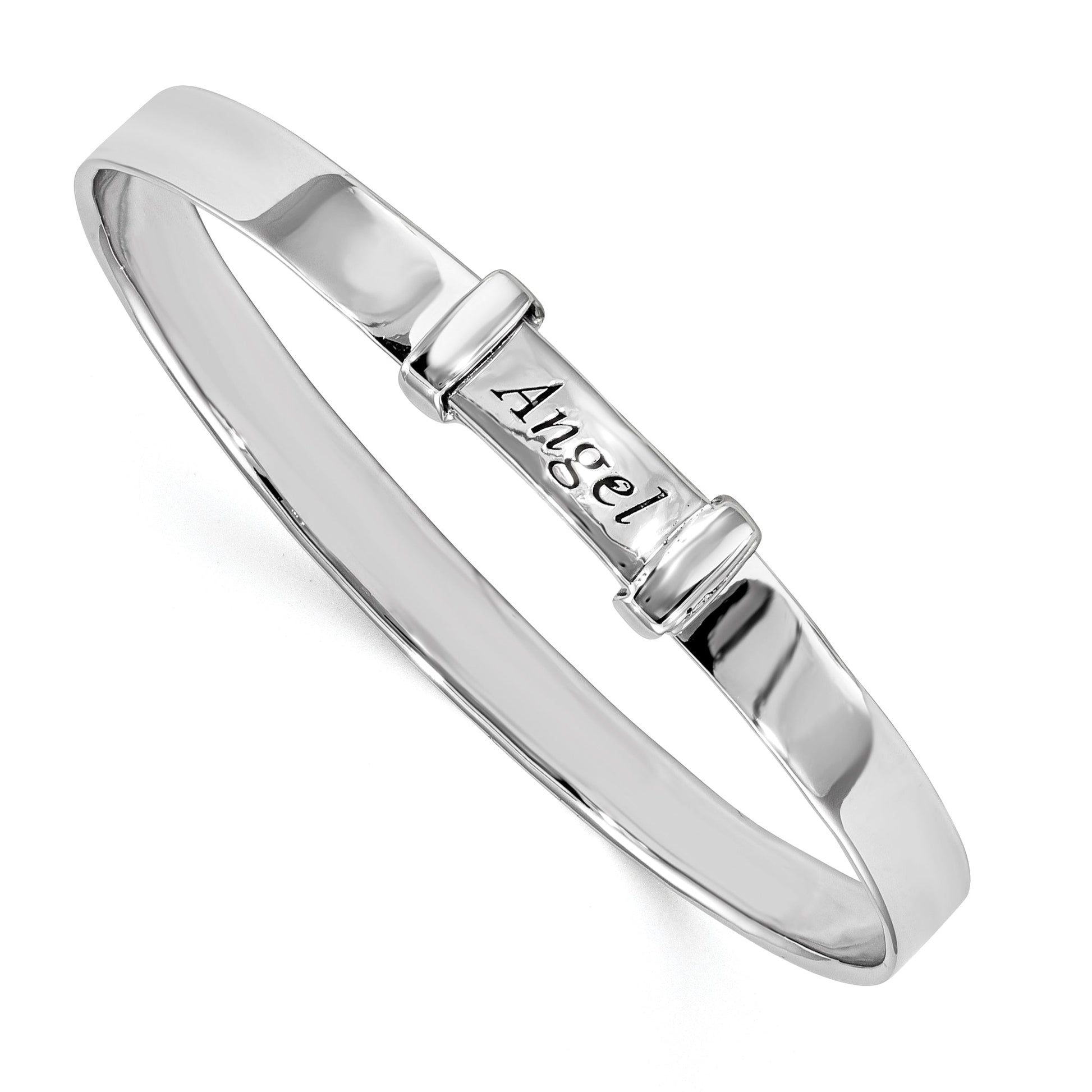 Capture the innocence of childhood with our Sterling Silver Rhodium-Plated Child's Enamel Angel Expandable Bangle. Crafted from 925 sterling silver, this bangle measures 5.5 inches in length and features a polished finish for timeless elegance. A charming enamel angel adorns the sleek design, making it perfect for any little girl. The bangle is slip-on, without the need for a clasp, offering ease and comfort in wear. Plated in rhodium, it resists tarnish and retains its silver tone, promising durability. This Sterling Silver Rhodium-Plated Child's Enamel Bangle is a sweet keepsake for a young one's wrist.