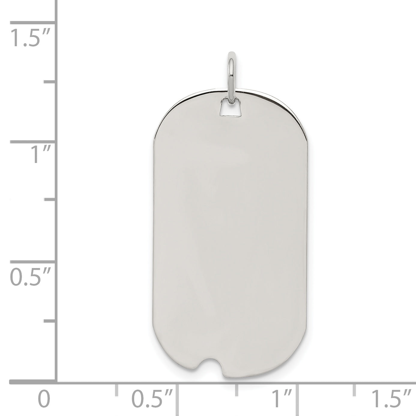 The Sterling Silver Rhodium-Plated Engraved Dog Tag Charm combines elegance and personal touch, crafted with precision for lasting beauty. Made from 925 sterling silver and finished with a sleek polish, the front of this charm shines with sophistication. The back features a satin finish, offering a unique, contrasting texture. This 33mm dog tag pendant is rhodium-plated for added tarnish resistance, ensuring its brilliance stays intact. Its flat back profile accommodates engravings, perfect for personal messages. Whether as a gift or personal treasure, the Sterling Silver Rhodium-Plated Engraved Dog Tag Charm radiates timeless charm and individuality.