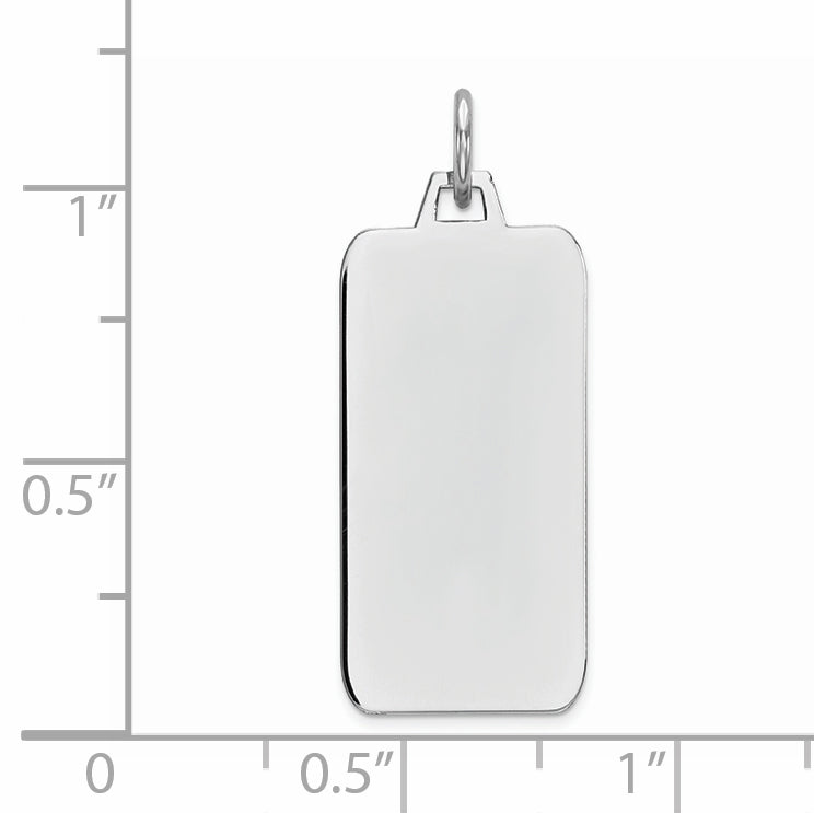 Introducing the Sterling Silver Rhod-Plate Eng. Rect. Polish Front/Satin Back Disc Charm, a fine jewelry piece that blends timeless elegance with personalized flair. Crafted in 925 sterling silver, this charm boasts a polished front with a smooth, satin back. Measuring 30 mm in length with a solid, engravable surface, it serves as a unique canvas for personal expression. The silver rhodium plating adds a luxurious touch, while its rectangle design with rounded corners enhances durability and style. Elevate your jewelry collection with this refined and customizable charm, perfect for any pendant or bracelet ensemble.
