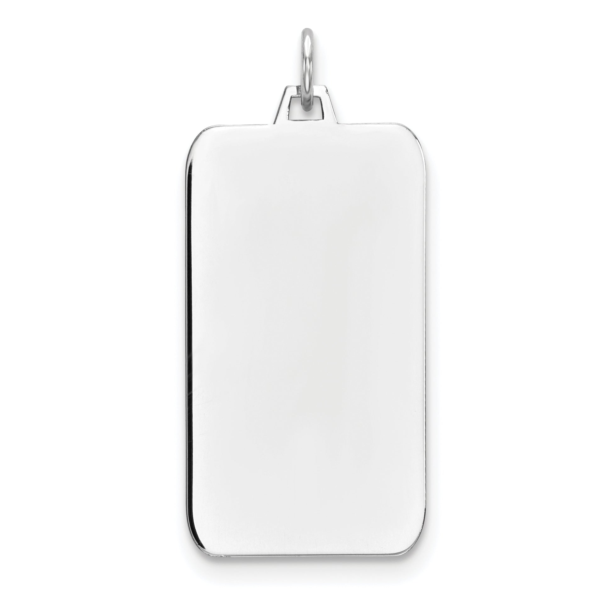 Meet the Sterling Silver Rhodium-Plated Engraved Rectangle Charm, where elegance meets personal touch. Crafted from sterling silver, this piece showcases a polished front and a satin back, exuding sophistication from every angle. With a size of 37mm in length and 16mm in width, its dimensions make it a standout. The rhodium plating adds a silver sheen that prevents tarnish, ensuring longevity. What makes this charm a true gem is its engravable feature, perfect for personal messages. Never doubt the quality; this piece will carry your stories for generations. Shop the Sterling Silver Rhodium-Plated Engraved Rectangle Charm today.