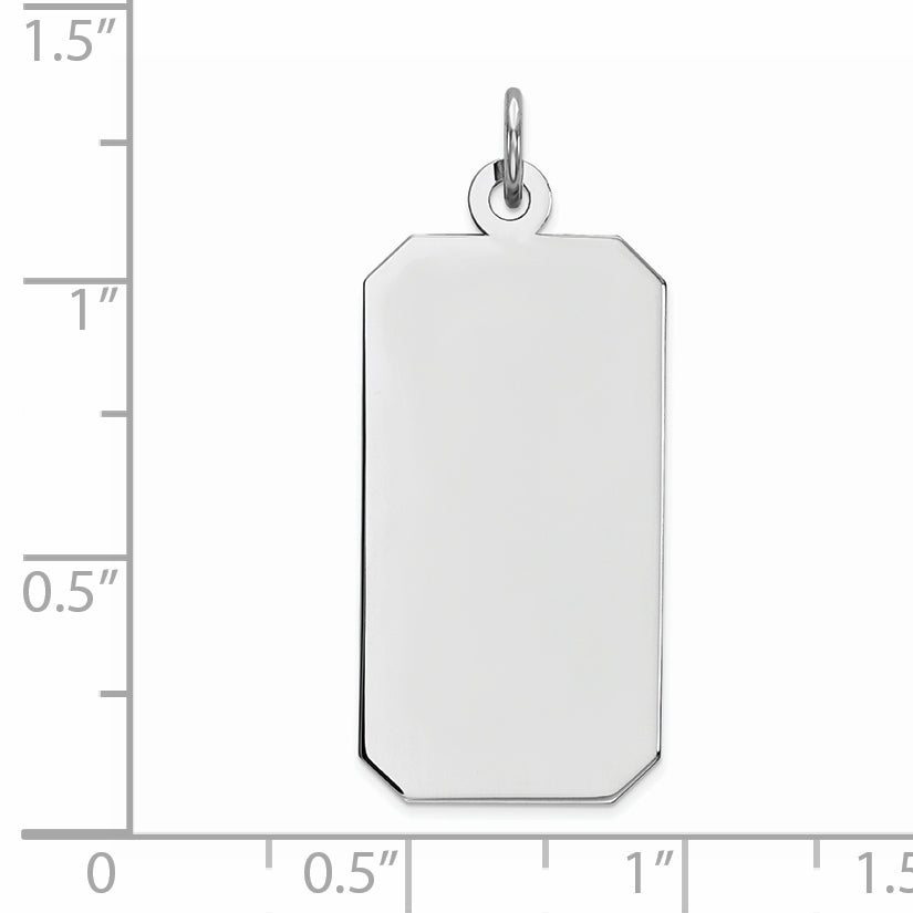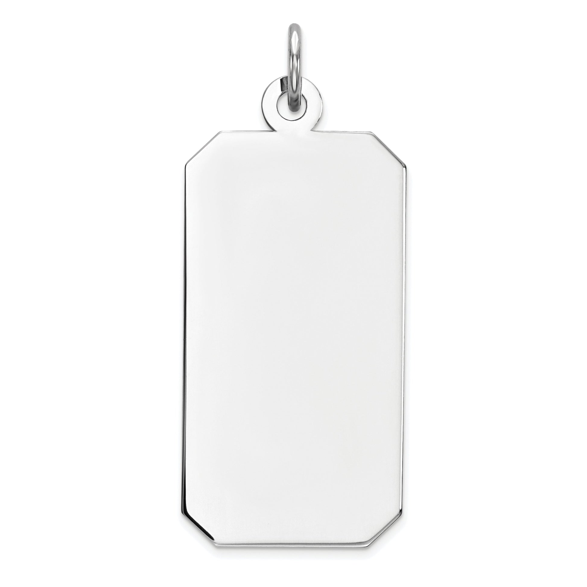 Introducing the Sterling Silver Rhodium-Plated Engravable Rectangle Charm, a timeless piece for your collection. Made from 925 sterling silver, this charm showcases a lustrous polished front paired with a satin-finish back, adding unique texture and contrast. It measures 35mm in length and 14mm in width, offering a perfect balance of elegance and presence. With its rhodium plating, it maintains a bright silver tone, resisting tarnish over time. This charm's flat back design makes it easily engravable, allowing you to personalize it to suit your style. Elevate your look with this exquisite Sterling Silver Rhodium-Plated Engravable Rectangle Charm.
