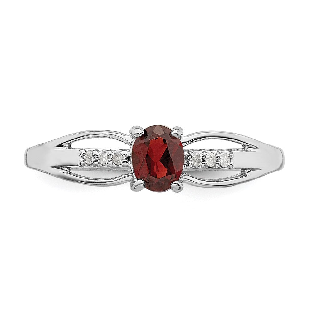 Discover the Sterling Silver Rhod-Plated Diamond Garnet Ring, a stunning piece for those who seek elegance. Crafted from solid 925 sterling silver, it features a bright rhodium finish that stays shiny over time. The ring showcases a sparkling diamond and a bold garnet stone, both set with precision in a classic 4-prong style. Its open back design offers comfort and a sleek look, perfect for daily wear or special occasions. The round diamond and oval garnet add a touch of charm, making Sterling Silver Rhod-Plated Diamond Garnet Ring a must-have for any jewelry collection.