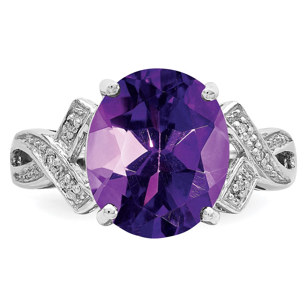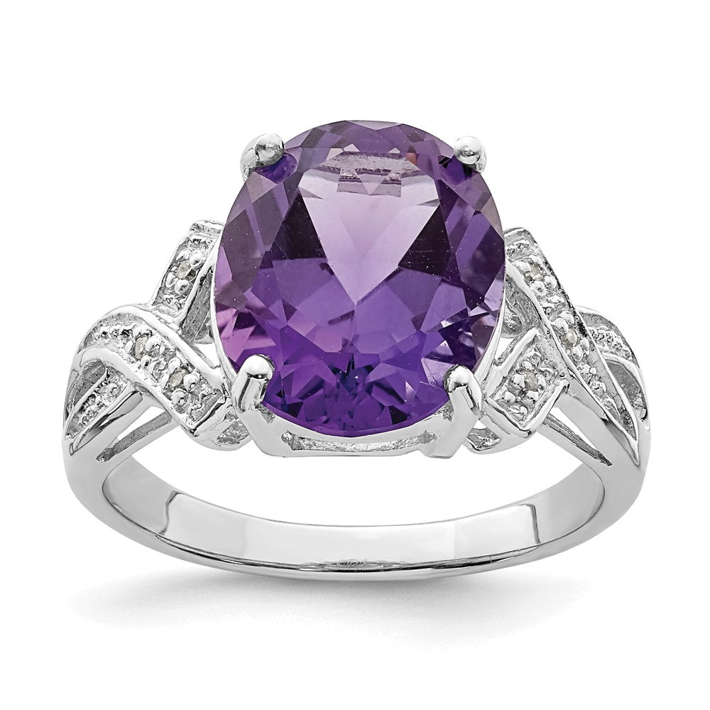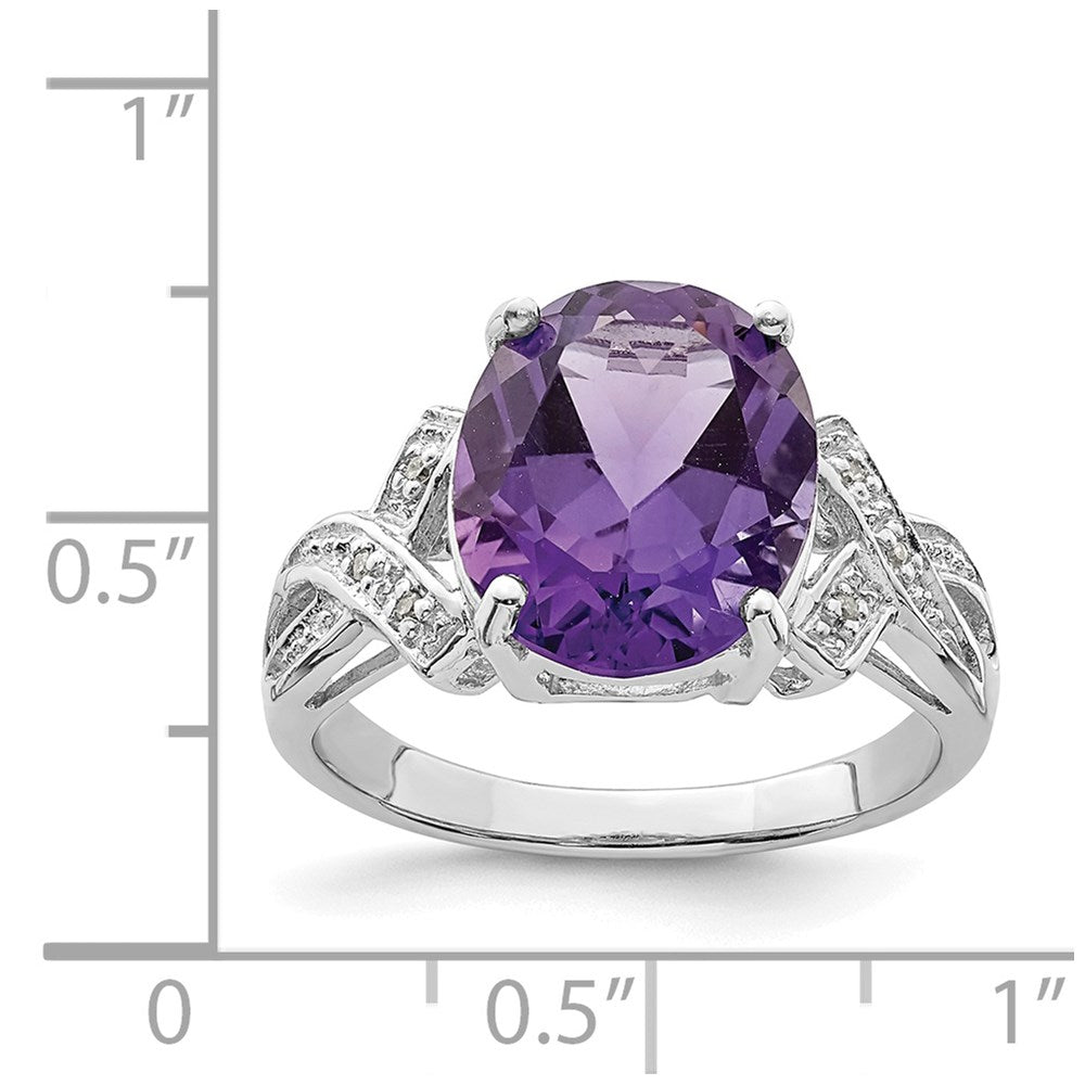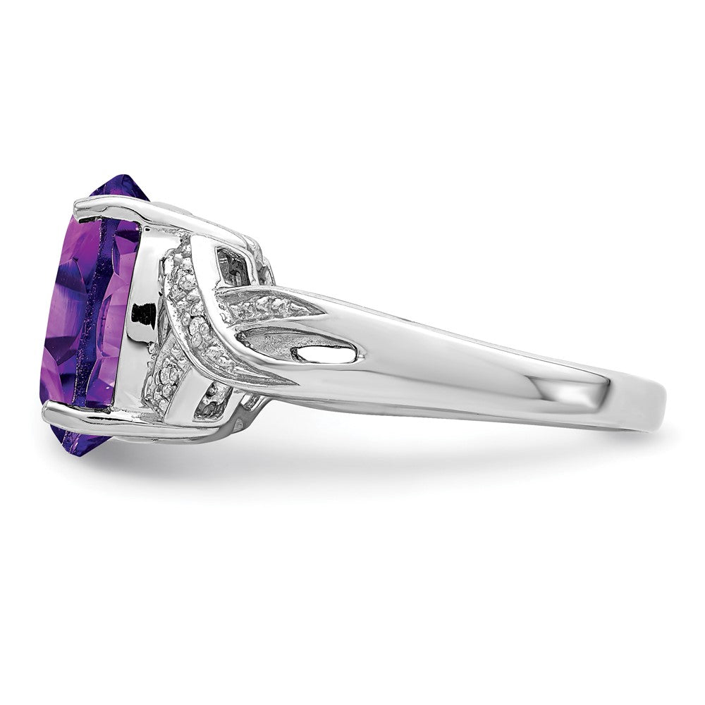 Sterling Silver Rhodium Amethyst Diamond Ring