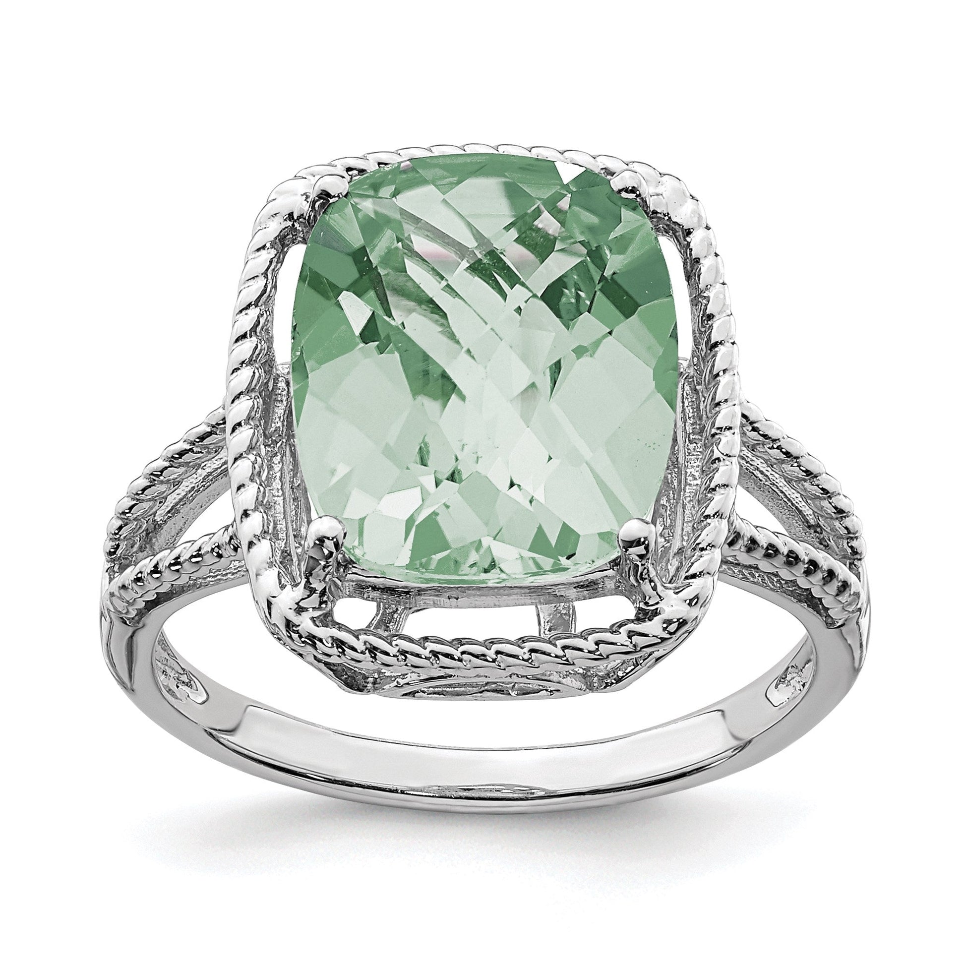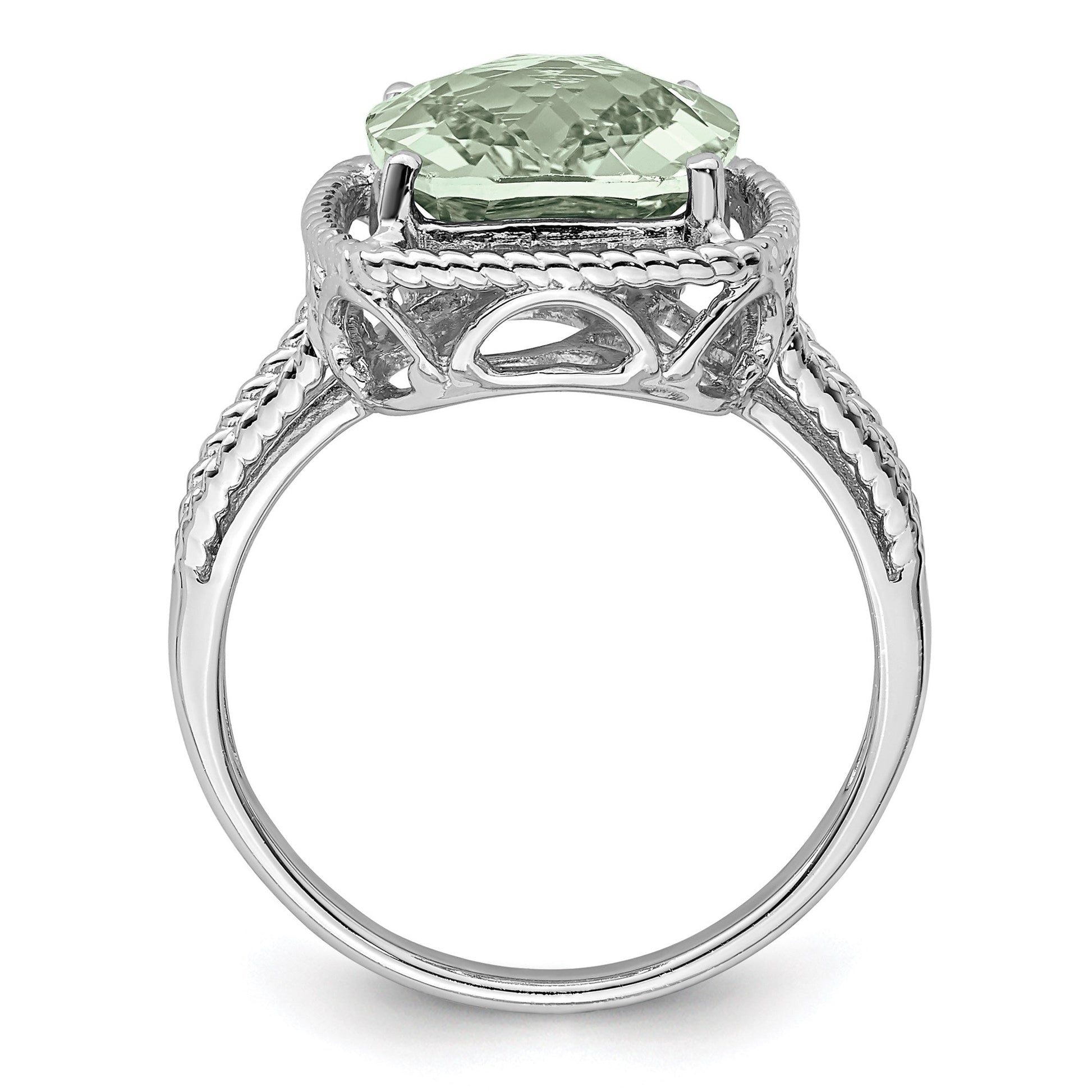 Sterling Silver Rhodium Checker-Cut Green Quartz Gemstone Birthstone Ring Fine Jewelry Gift for Her