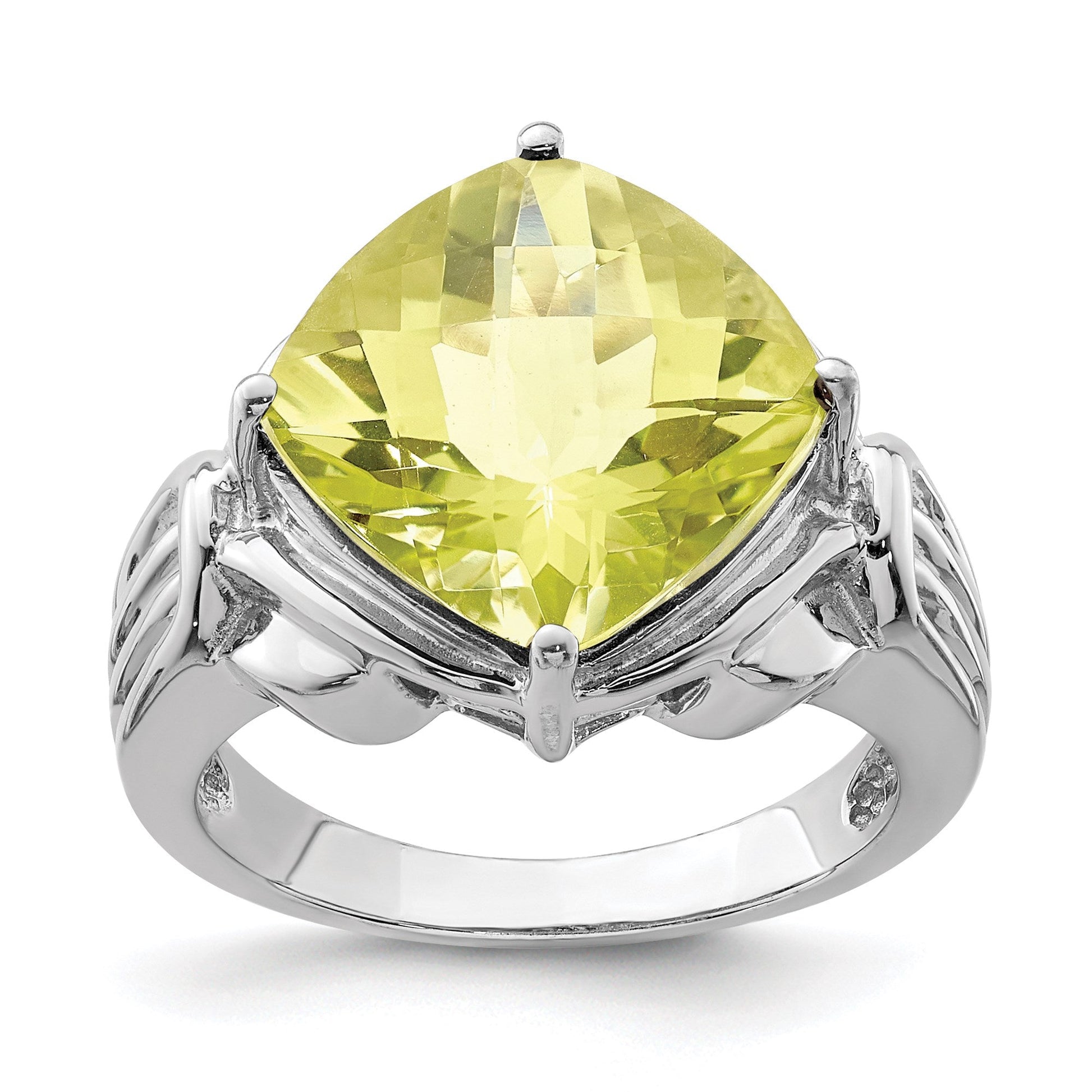 Sterling Silver Rhodium Checker-Cut Lemon Quartz Gemstone Birthstone Ring Fine Jewelry Gift for Her
