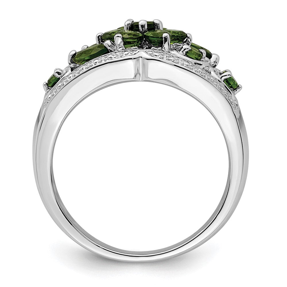 Elevate your look with the Sterling Silver Rhodium Chrome Diopside Ring, a true piece of elegance. Crafted from high-quality 925 sterling silver, this ring shines with a polished finish and a sleek silver tone. The band measures 3 mm wide, offering a comfortable fit. It features a captivating 1.15-carat total weight of lustrous chrome diopside stones, set to catch the light with every move. Built with care through casting, the ring is solid and durable. Perfect for women who want a stylish touch, the Sterling Silver Rhodium Chrome Diopside Ring blends beauty and strength for everyday wear or special occasions.