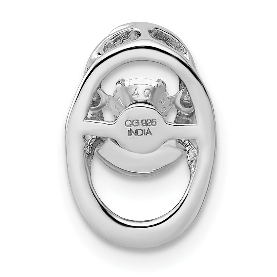 The Sterling Silver Rhodium CZ Birthstone Vibrant Chain Slide is a captivating piece, perfect for any jewelry lover. Crafted from high-quality sterling silver with rhodium plating, it boasts a brilliant cubic zirconia stone in an April birthstone charm. The smooth polish enhances its lustrous appeal, making it a striking accessory for any occasion. At 14.5 mm in length, this pendant is beautifully designed with a moveable feature, adding a playful touch. It is made to last with solid construction and a casted manufacturing process. Add this Sterling Silver Rhodium CZ Birthstone Vibrant Chain Slide to your collection for a timeless look.