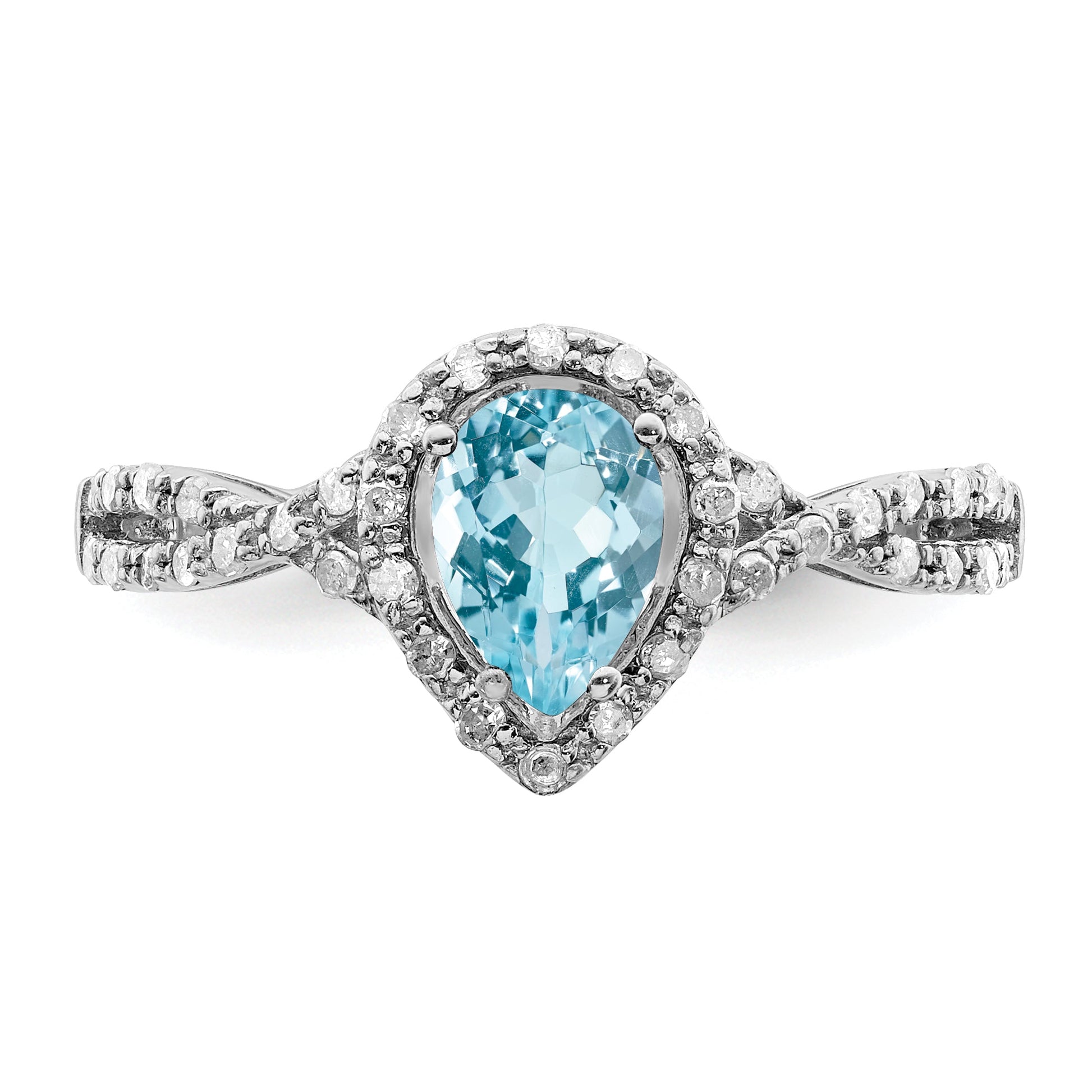 The Sterling Silver Rhodium Diam. & Sky Blue Topaz Ring is the perfect mix of elegance and sparkle. Crafted from pure 925 silver and finished with a shiny rhodium coat, this ring shines bright. It features a stunning 7x5 mm pear-shaped sky blue topaz that’s irradiated for extra color. A sparkling diamond adds a touch of luxury, making this piece a real eye-catcher. With a sleek 2 mm band, it offers a comfortable fit and a bold look. Whether for a special day or just because, the Sterling Silver Rhodium Diam. & Sky Blue Topaz Ring makes any woman feel special.