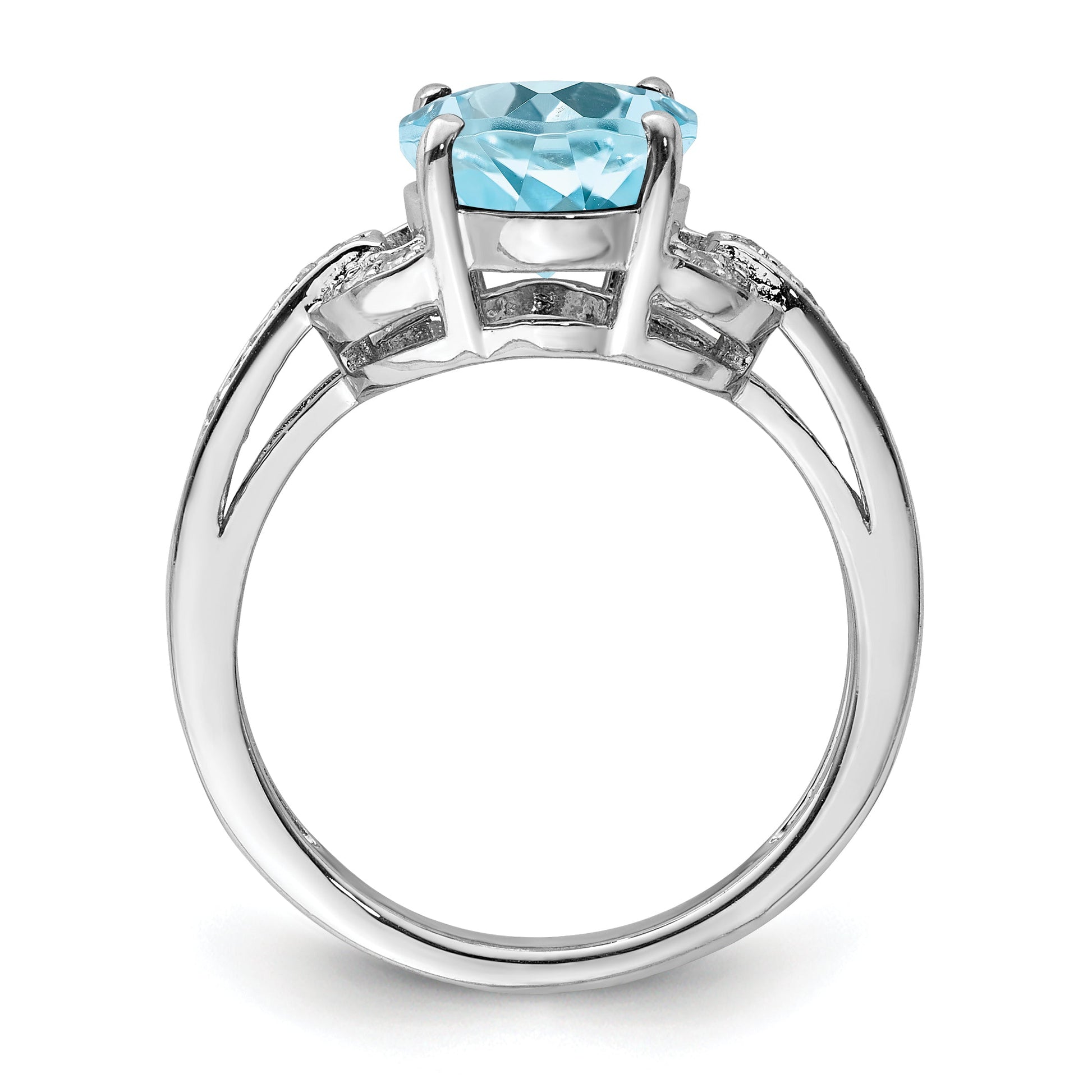The Sterling Silver Rhodium Diam. & Sky Blue Topaz Ring is a stunning piece that captures attention with its bright design. Crafted from solid 925 sterling silver, this ring features a dazzling oval sky blue topaz stone weighing 3.25 carats, cut with a faceted shape for extra sparkle. Tiny diamonds add a touch of shimmer, making the ring stand out even more. The rhodium plating offers a sleek silver tone and keeps the ring looking fresh. Perfect for December birthdays or anyone who loves a bold, colorful ring, the Sterling Silver Rhodium Diam. & Sky Blue Topaz Ring combines beauty with quality in every detail.