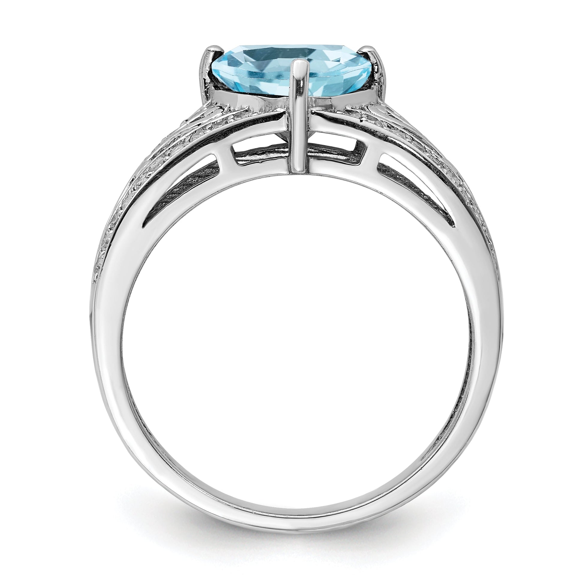 Discover the Sterling Silver Rhodium Diam. & Sky Blue Topaz Ring, a stunning piece for any jewelry lover. This ring features a sleek 2 mm band crafted from pure sterling silver, plated in shiny rhodium for extra shine and durability. At its center, a vibrant 8 mm trillion-shaped sky blue topaz grabs attention, complemented by sparkling diamonds for added elegance. The natural, irradiated topaz boasts a faceted cut, enhancing its brilliant blue hue. Perfect for December birthdays or those who love a pop of color, the Sterling Silver Rhodium Diam. & Sky Blue Topaz Ring blends style with quality, making it a must-have for your collection.