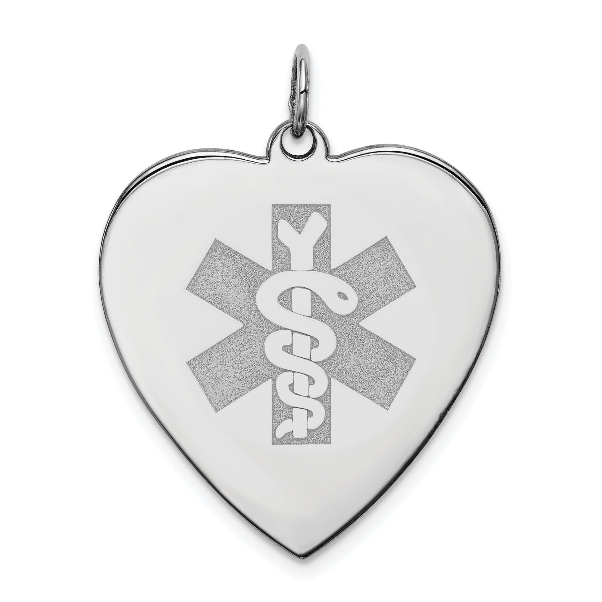 The Sterling Silver Rhodium Engraveable Non-Enameled Heart Medical Pendant is a sleek way to keep loved ones close. Crafted from 925 sterling silver and finished with a shiny rhodium plating, this 32 mm charm is both stylish and practical. Its heart shape makes it a perfect gift, especially since you can add a personal touch through engraving. Weighing just enough to wear comfortably, this medical alert pendant lets you stay safe without sacrificing style. The Sterling Silver Rhodium Engraveable Heart Medical Pendant combines durability and elegance, making it a great choice for everyday wear.