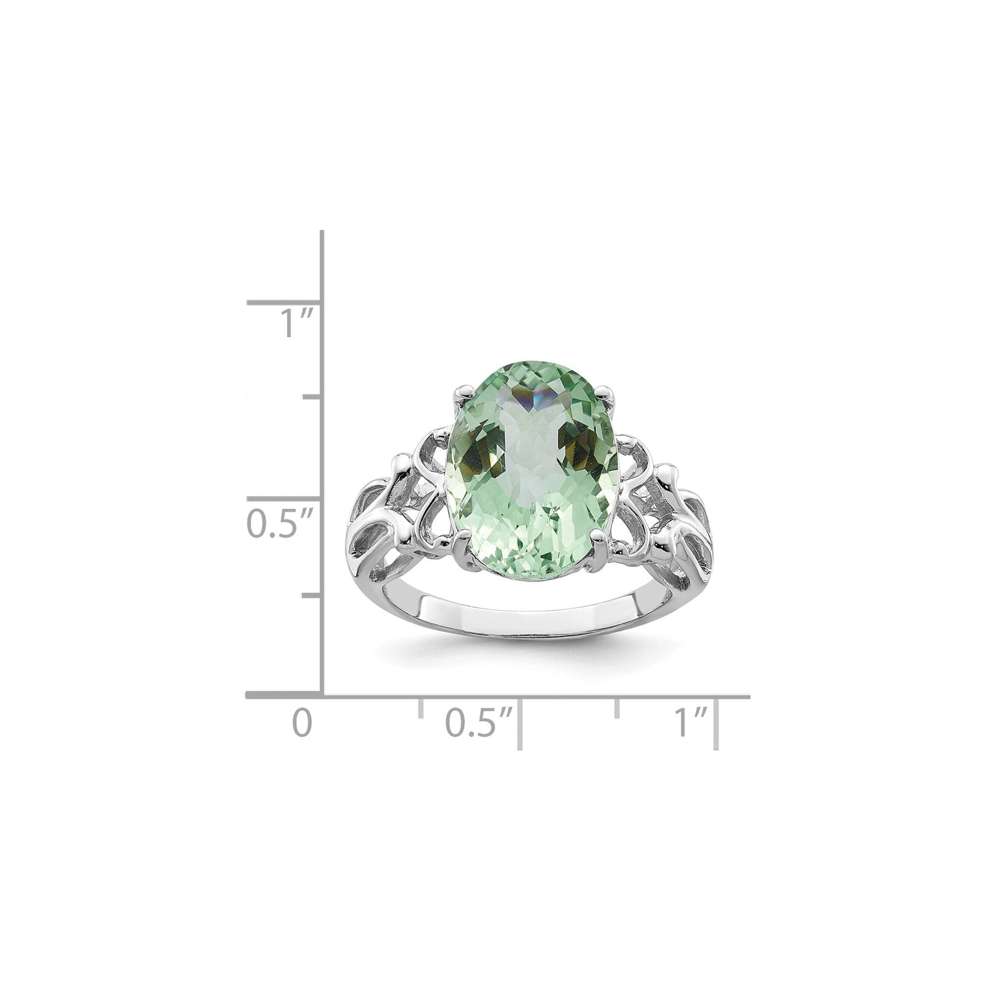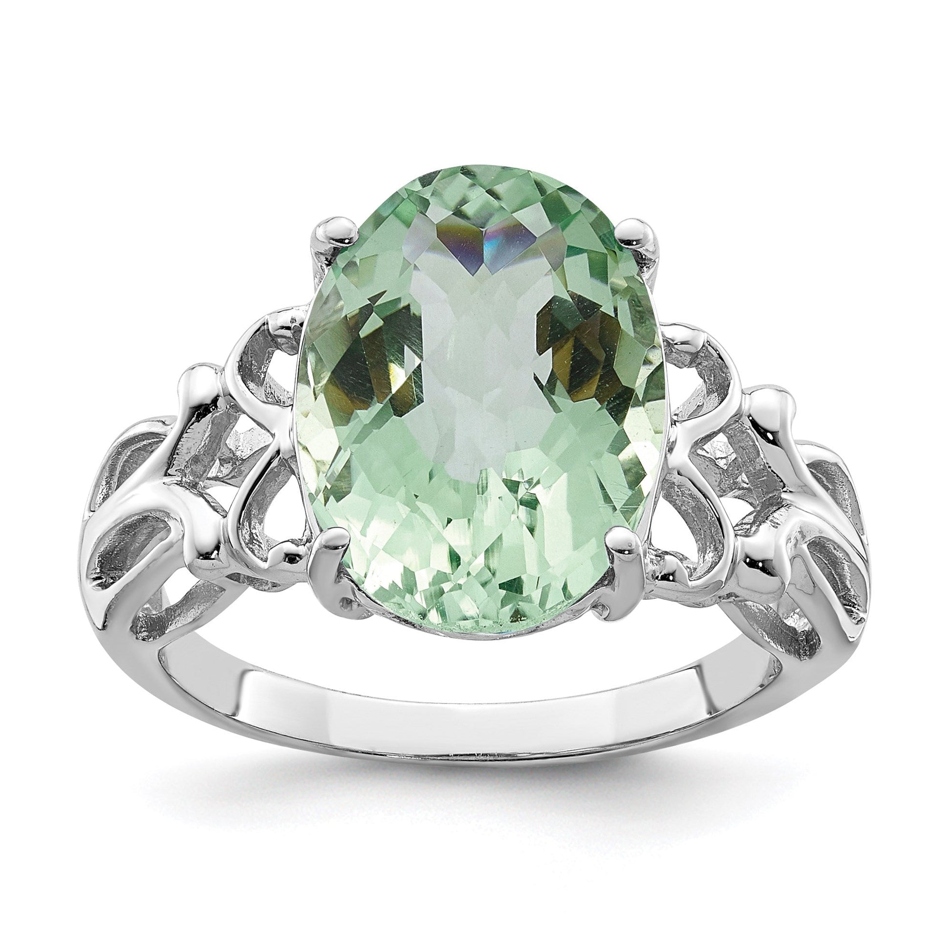 Sterling Silver Rhodium Oval Checker-Cut Green Quartz Gemstone Birthstone Ring Fine Jewelry Gift for Her