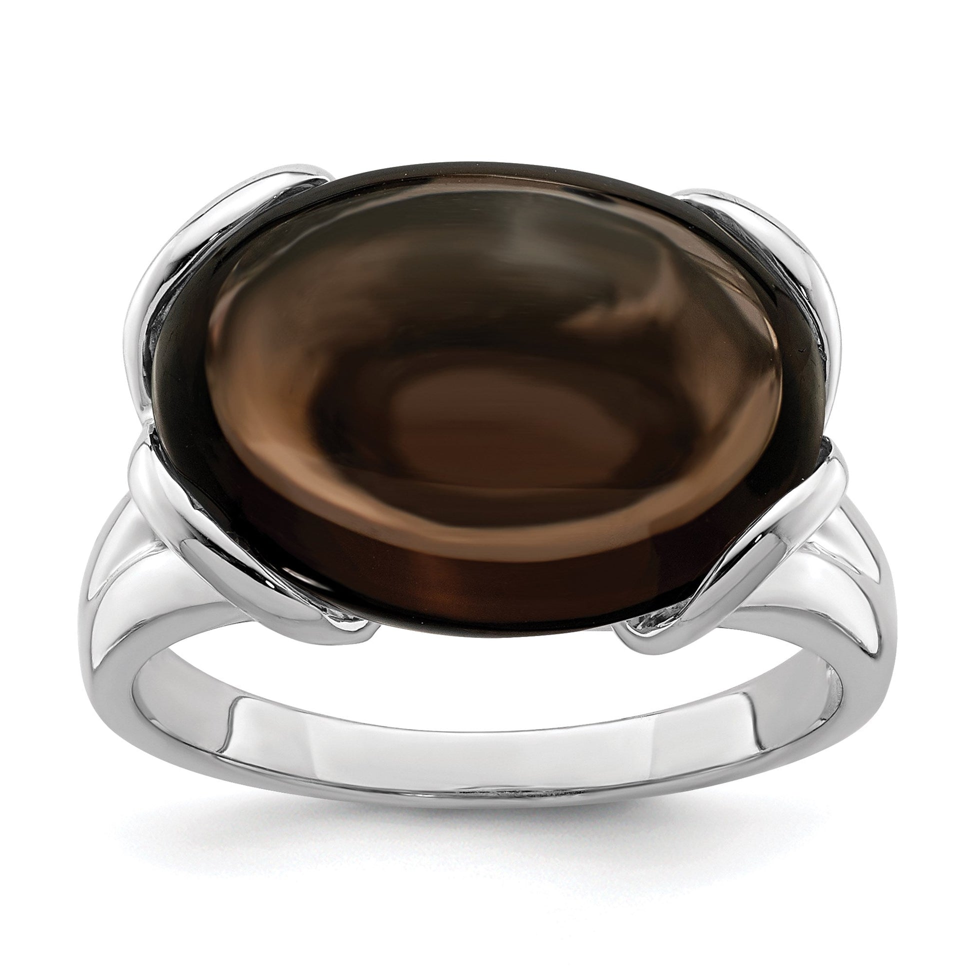 Sterling Silver Rhodium Oval Smoky Quartz Gemstone Birthstone Ring Fine Jewelry Gift for Her
