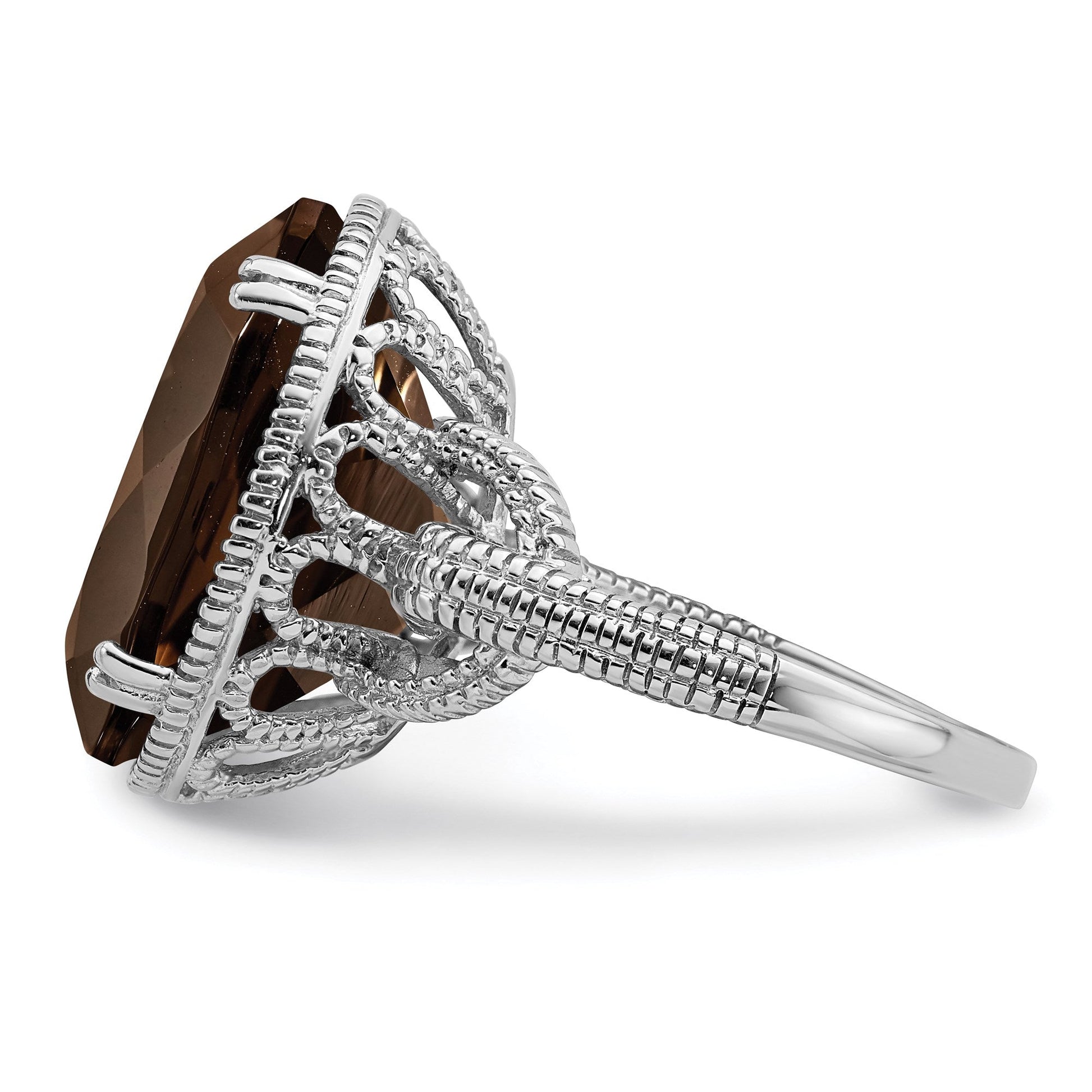 Sterling Silver Rhodium Oval Smoky Quartz Gemstone Birthstone Ring Fine Jewelry Gift for Her