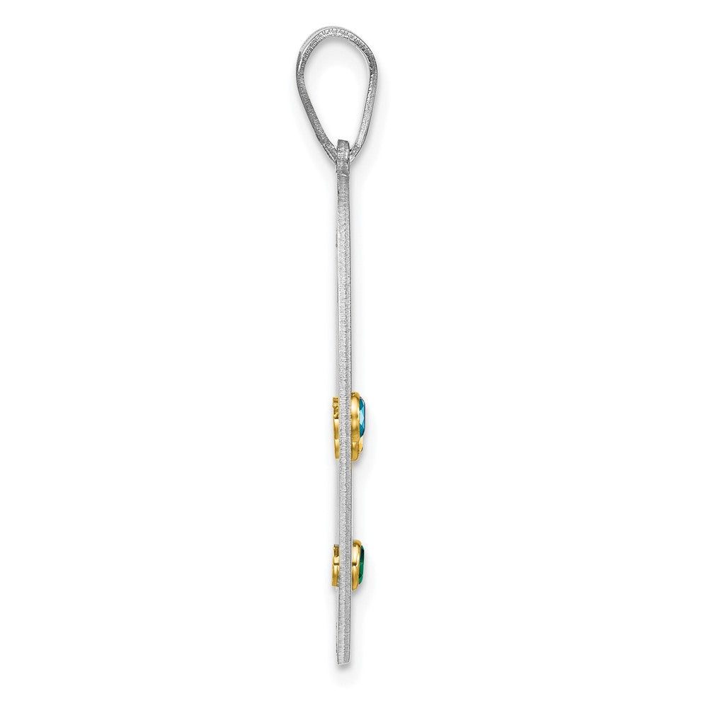 The Sterling Silver Rhodium-Plated/14K Bezel Crystal Family Pendant is a stunning piece that speaks elegance. Crafted from 925 sterling silver, this pendant showcases a 14K bezel with rhodium plating for a chic, polished look. You can personalize the stones for a touch of unique charm. The pendant measures 31mm long and 19mm wide, making it an ideal size to complement any outfit. The yellow accent color adds a hint of warmth, while the silver tone plating ensures durability. With this family-themed pendant, carry your loved ones close to your heart with style and grace.