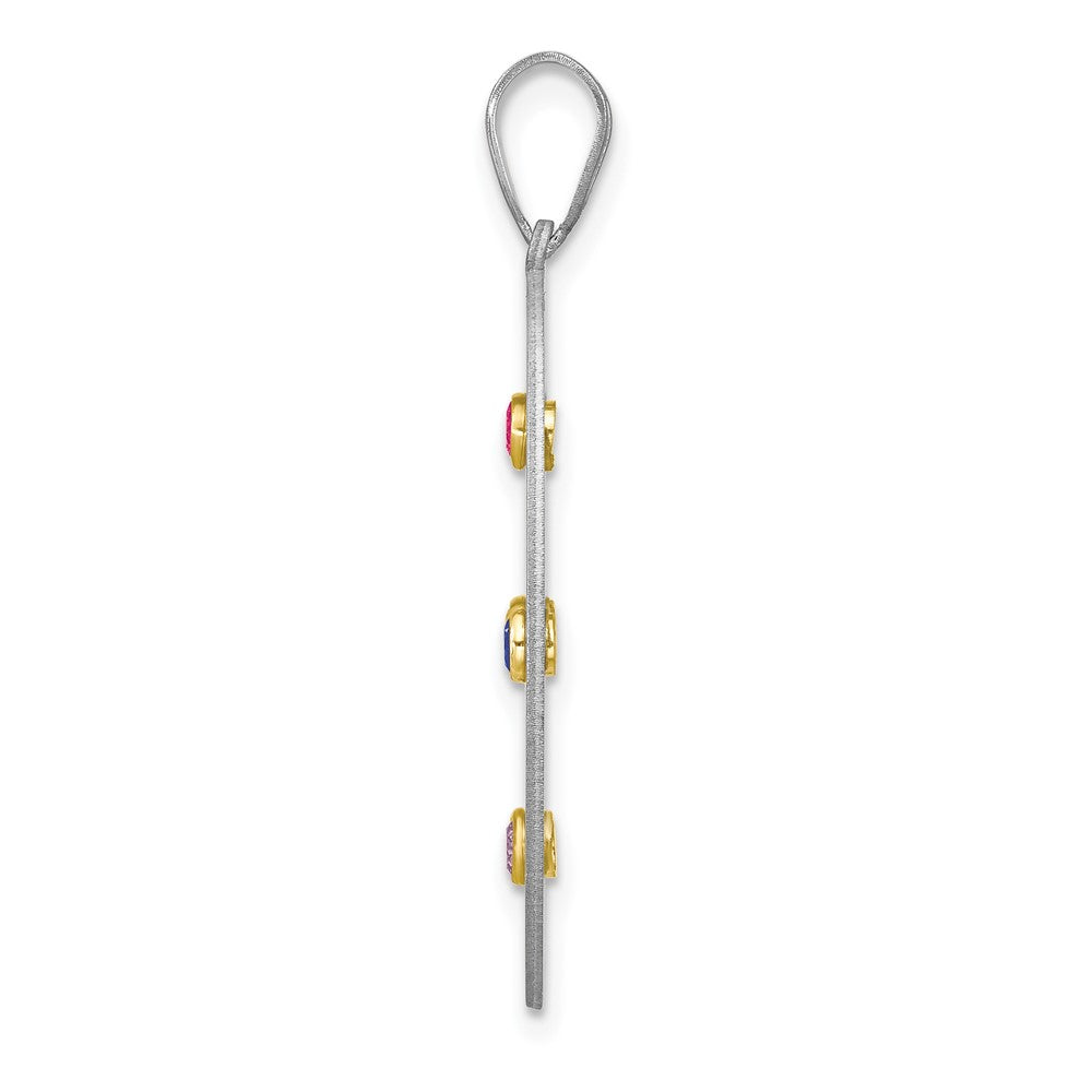 This Sterling Silver Rhodium-Plated 14K Bezel Crystal Family Pendant elevates your style with its timeless elegance. Crafted from 925 sterling silver, this stunning pendant has rhodium plating that resists tarnish and adds shine. Personalize it with stones of your choice, creating a piece that's unique to your family. Measuring 31mm in length and 19mm in width, it has a 3mm bail for easy wear. The 14K yellow accent adds a warm touch. Whether it’s a gift or a self-indulgence, this jewelry piece has you covered!
